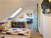 Bad, Wohnküche mit Schlafsofa, Schlafzimmer mit Doppelbett, Kinderbett und Hochstuhl auf Anfrage.