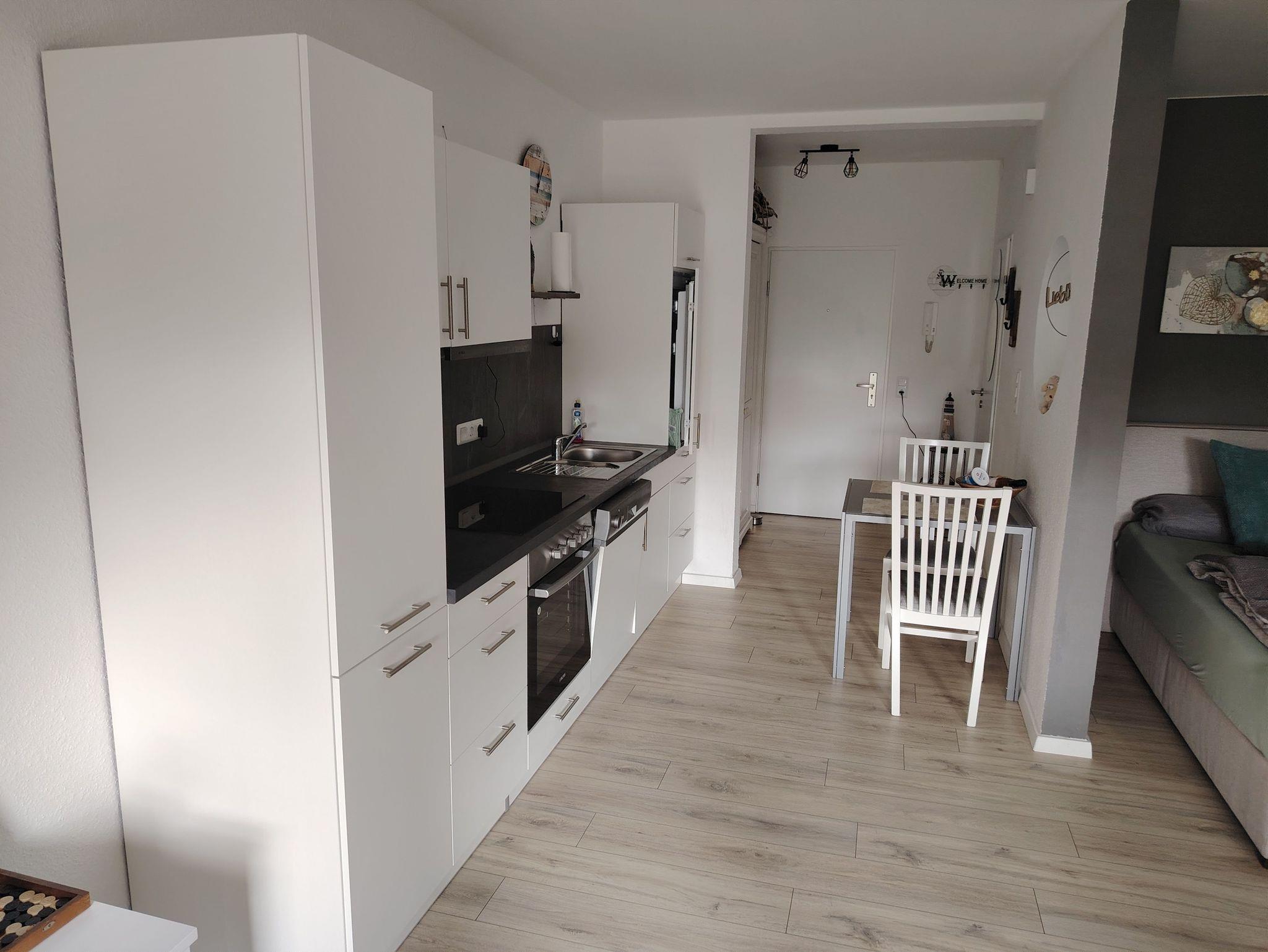 Frisch renoviertes Ferienapartment im bevorzugten Stadtteil Emden-Wolthusen. Die 32 qm große Einraumwohnung liegt im EG eines ruhigen und gepflegten Terrassenhaus. Eine idyllische Terrasse lädt zum Ausspannen ein. Parkplatz direkt vor der Haustür. Fahrräder können in der anliegenden Garage abgestellt werden. Langzeitvermietung zu Sonderkonditionen. Der Vermieter bietet Bootstouren zu Sonderkonditionen an.
