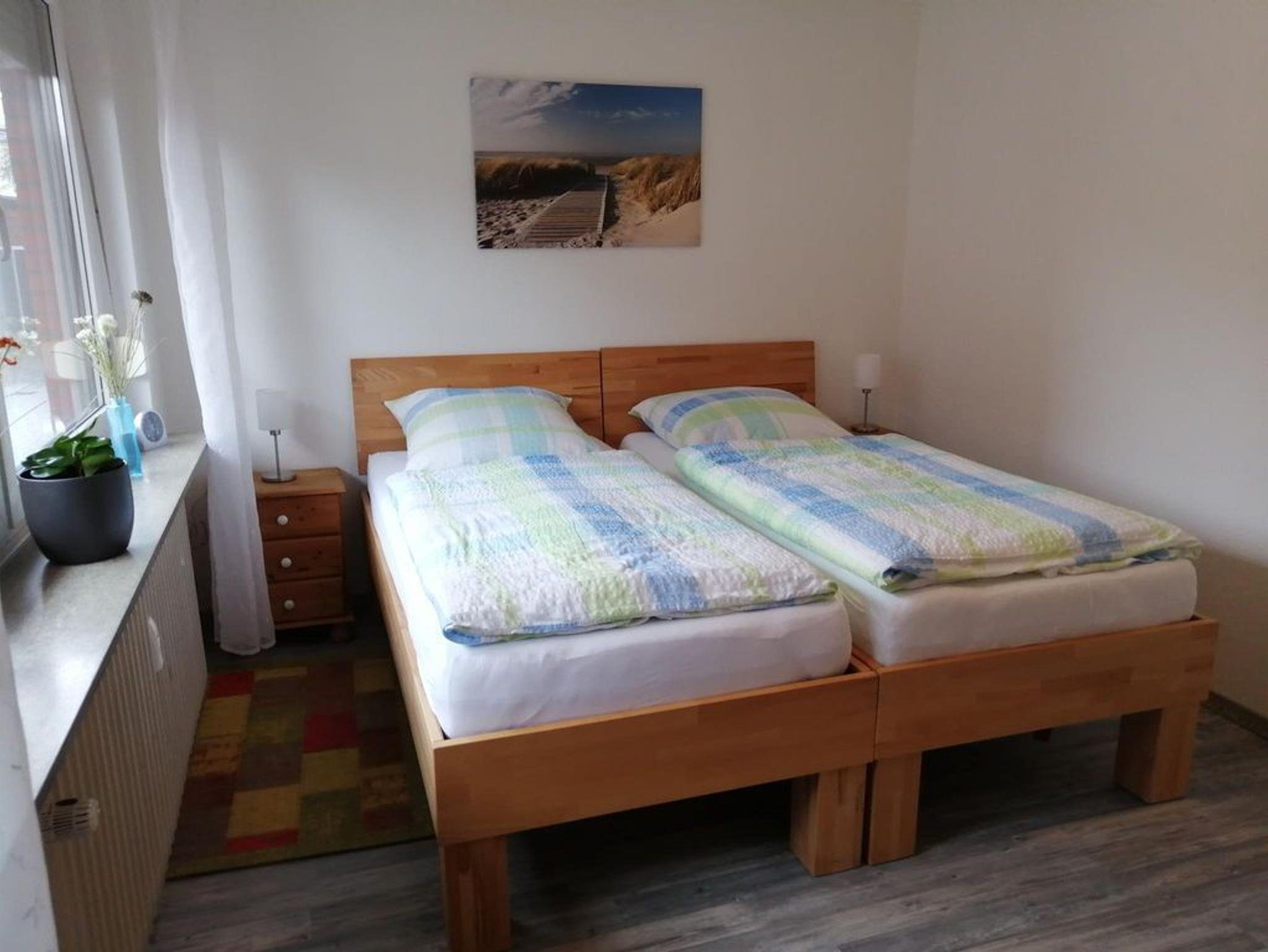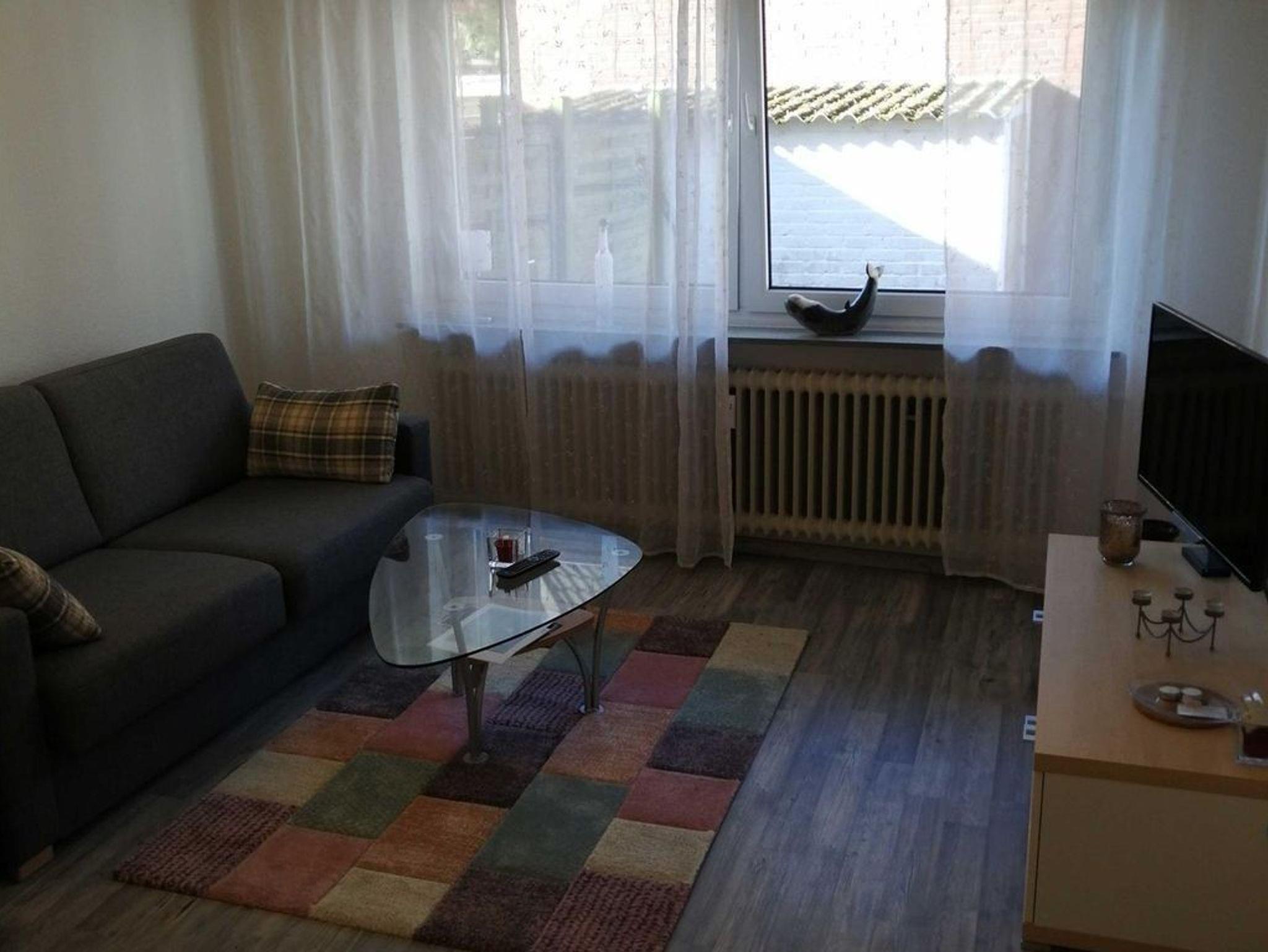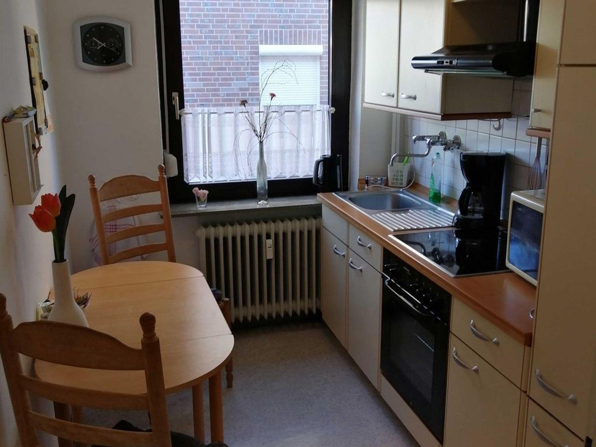 Die Wohnung ist ca. 43m² groß und befindet sich in der Hochparterre, sie ist unterteilt in: 1 Wohnzimmer mit Essgelegenheit, 1 Schlafzimmer mit 2 Einzelbetten (Können zu einem Doppelbett verbunden werden), eine kleine Küche mit einer Einbauküche und Essgelegenheit für 2-max. 3 Personen, 1 kleines Duschbad mit WC und Zwangsbelüftung und 2 kleine Flure, einer mit einem Einbauschrank für alle notwendigen Haushaltsutensilien wie z.B. Staubsauger, Eimer Wischmob usw. Die Ferienwohnung befindet sich in einem ruhigen 5 Parteien Haus. Parkplätze finden Sie in der näheren Umgebung. Im Schlafzimmer besteht die Möglichkeit ein Reisebett mit Matraze aufzustellen, welches separat gebucht werden kann. Alle Zimmer haben Aussenrollos und der Blick geht auf einen kleinen geplastertern Hof, bzw. von der Küche aus auf eine kleine Nebenstraße. Tischwäsche, Küchentücher, Handtücher und Bettwäsche sind incl.