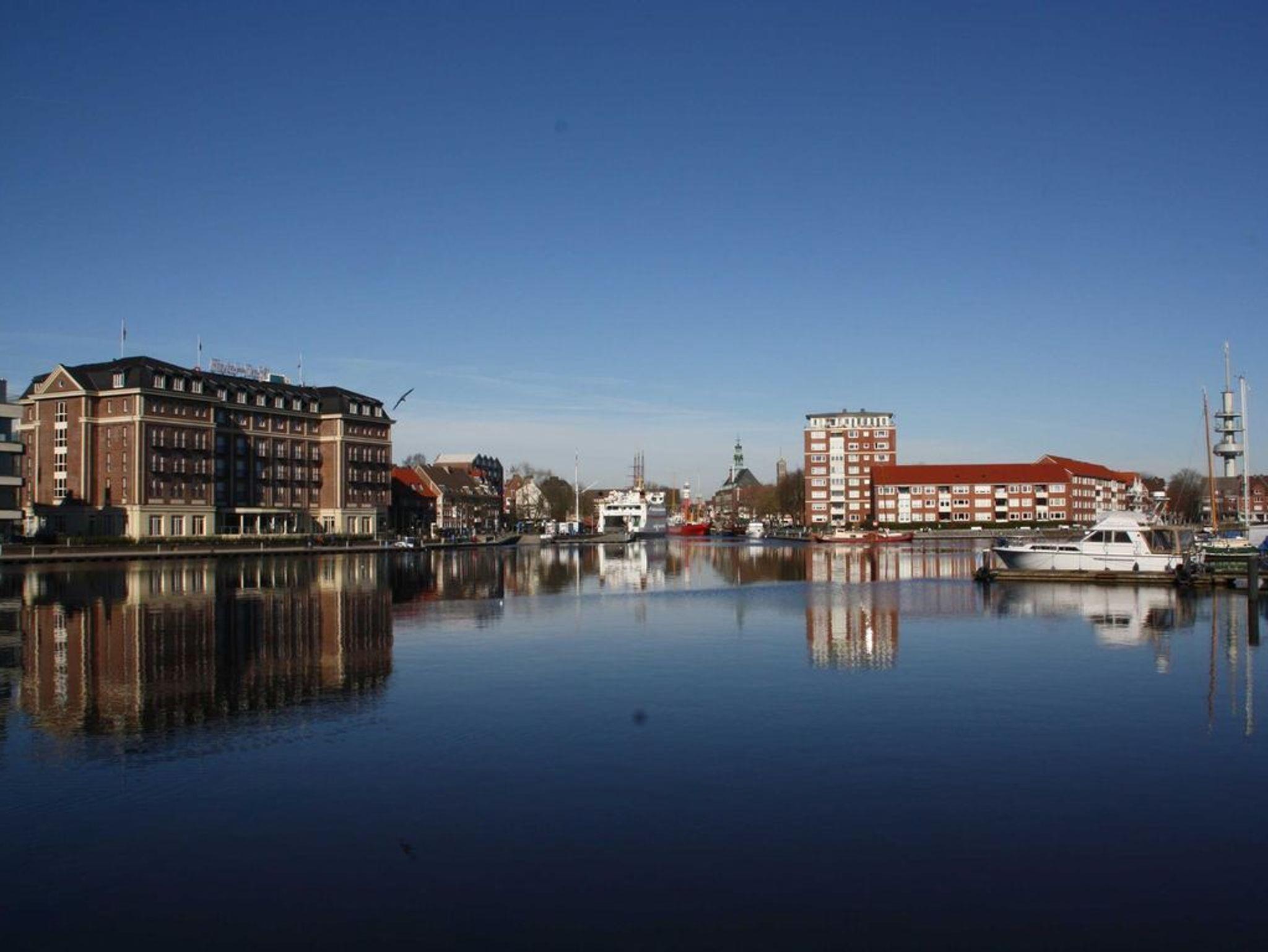 Die Ferienwohnung liegt ruhig und zentral in der Stadtmitte. Die Wohnung liegt 3 Gehminuten von der historischen Wallanlage Emdens entfernt. Wenige Gehminuten entfernt trifft der mittelalterliche Falderndeft auf die weltweit, einzigste Kesselschleuse mit 4 Schleusenkammern. In der fussnahen Umgebung befinden sich ein Bäcker, ein Kiosk, ein Fleischer, ein Imbiss, mehrere Lokale, ein Friseur und vieles mehr. Die Ferienwohnung befindet sich in einem ruhigen 5 Parteien Haus. Parkplätze finden Sie in der näheren Umgebung. Zur Wohnung gehört ein abschließbarer Fahrradschuppen, auf dem Grundstück.