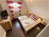 Im Obergeschoß befinden sich zwei Schlafzimmer und ein Flur. Das links Schlafzimmer verfügt über ein Doppelbett (1,40m Liegefläche) sowie einen eigenen Zugang zum Badezimmer mit Badewanne. Das gegenüber liegende Schlafzimmer besitzt zwei Einzel-/Doppelbetten (0,90m u. 1,40m Liegefläche) als Übernachtungsmöglichkeit. Das Ferienhaus ist demnach für bis zu sechs Personen ausgelegt.