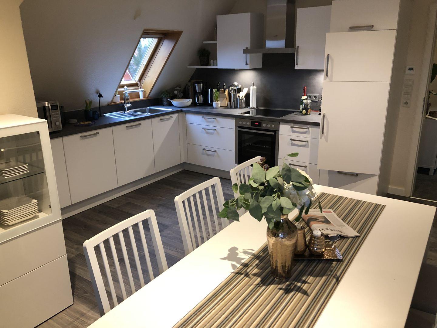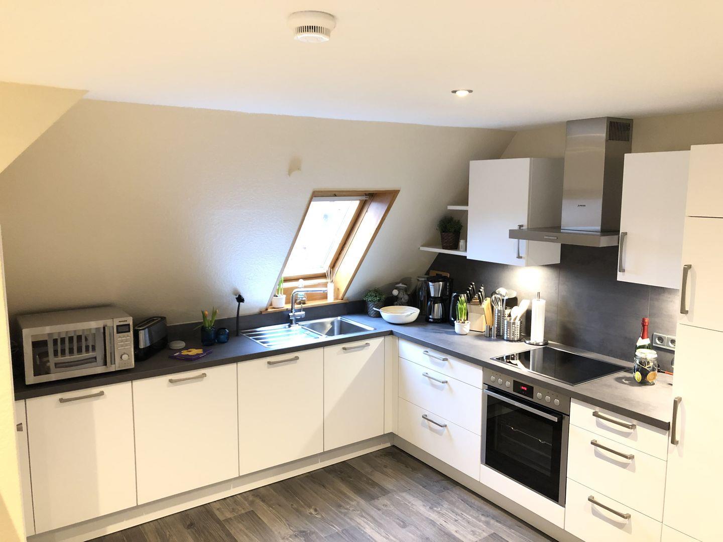 Die Ferienwohnung befindet sich im zweiten Stock eines gepflegten Wohnhauses und wurde im Jahr 2020 umfassend renoviert. Durch den geschlossenen Küchenbereich mit Esstisch können Sie Ihre kulinarischen Fähigkeiten unter Beweis stellen oder einfach nur gemeinsam frühstücken. Die moderne Küche ist mit einem Cerankochfeld, einem Kühlschrank mit Gefrierfach, einer Spülmaschine sowie zahlreichen Küchenutensilien und Geräten, einschließlich einer Kaffeemaschine und einer Mikrowelle, ausgestattet. Hier ist alles vorhanden, um Ihre eigenen Mahlzeiten zuzubereiten.