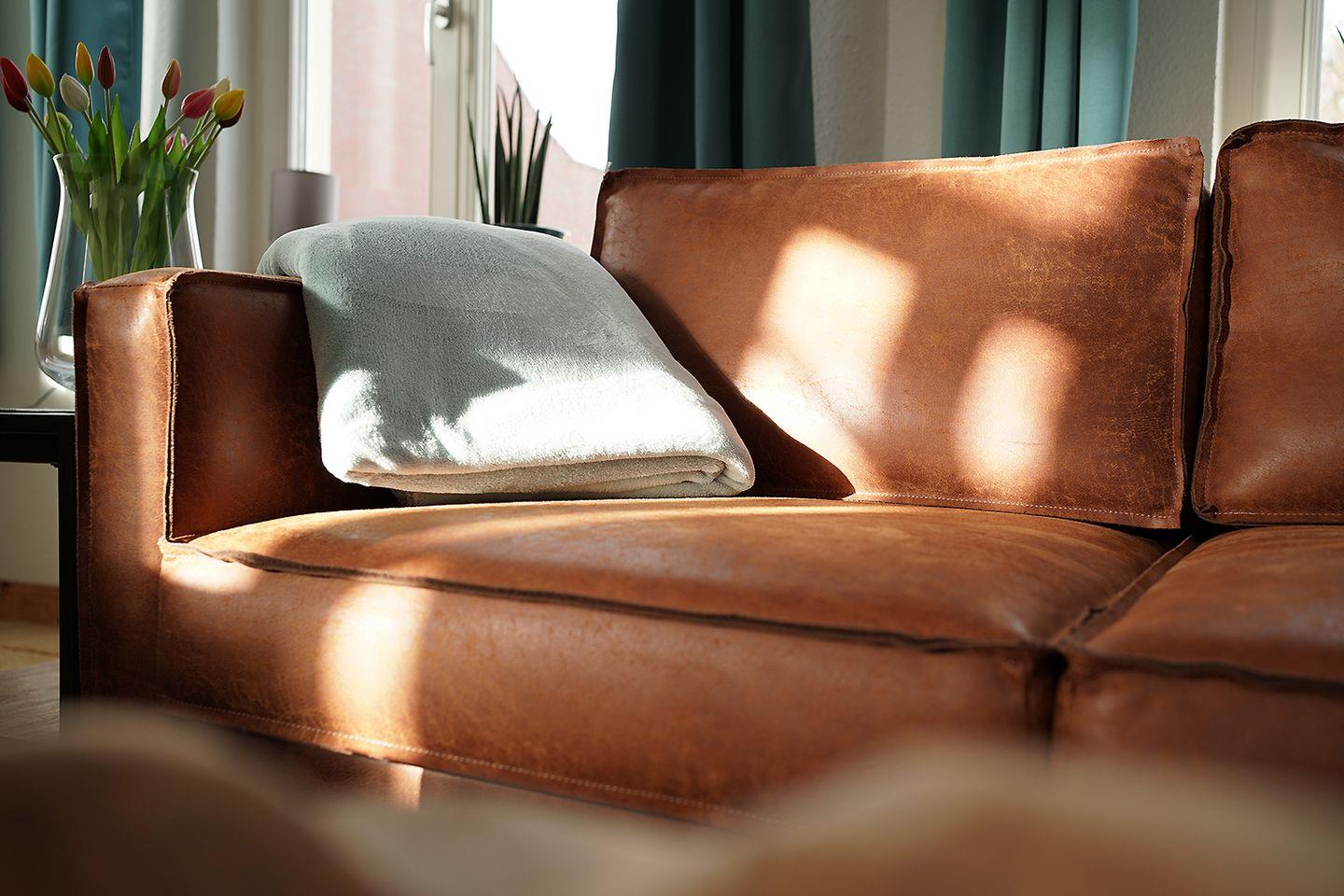 Zum Hof hin bietet die Wohnküche mit Balkon tolle Möglichkeiten für gemeinsames Kochen oder das Frühstück in der Morgensonne. Im Dachgeschoß liegen die zwei großzügigen Schlafzimmer mit jeweils einem Doppelbett und einem tollen Blick über die Emder Innenstadt. Zwischen den Zimmern ist das Wannenbad des Hauses angeordnet.