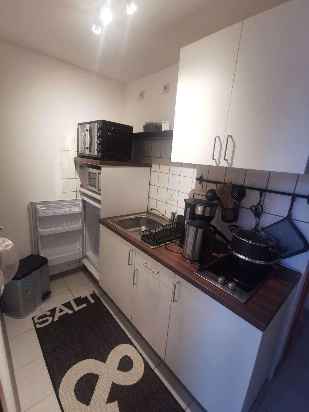 Die Wohnung hat eine Größe von 27 m² und ist unterteilt in Wohnzimmer, Schlafzimmer, Kochecke sowie einem Badezimmer und einem Abstellraum, sie ist für max. 2 Personen ausgestattet. Das vorhandene Bett im Schlafzimmer hat eine Größe von 1,40 m x 2,00 m. In der Küchenecke stehen Elektrogeräte wie z. B. Kaffeemaschine, Wasserkocher, Mini-Backofen, Mikrowelle, Toaster sowie eine Kochgelegenheit (mit 2 Herdplatten) zur Verfügung. Selbstverständlich ist auch ein TV und ein Radio vorhanden. Es handelt sich hierbei um eine Nichtraucher-Unterkunft.