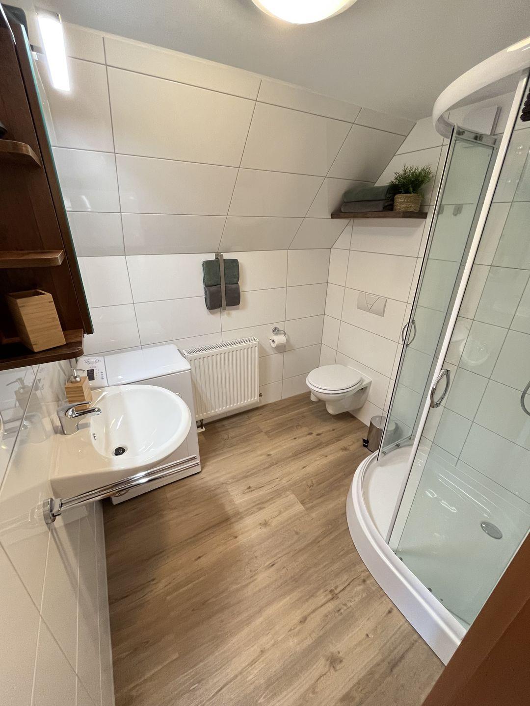 Die Wohnung hat eine Größe von 42 m² und ist unterteilt in Wohnzimmer, Schlafzimmer, Kochecke sowie einem frisch renoviertem Dusch-Badezimmer und einem Abstellraum, sie ist für max. 2 Personen ausgestattet. Die vorhandenen Betten im Schlafzimmer haben eine Größe von 0,90 x 2,00m - lassen sich aber problemlos zusammenschieben und mit einer "Liebesinsel" zu einem Doppelbett werden. Das Schlafzimmer befindet sich im Dachgeschoß der Wohnung und lässt sich über eine wohnungseigene Treppe erreichen. In der Küche stehen Elektrogeräte wie z. B. Kaffeemaschine, Wasserkocher, Backofen, Mikrowelle, Toaster sowie eine Kochgelegenheit (mit 4 Herdplatten) zur Verfügung. Selbstverständlich ist auch ein TV und ein Radio vorhanden. Es handelt sich hierbei um eine Nichtraucher-Unterkunft, Haustiere sind nicht gestattet.