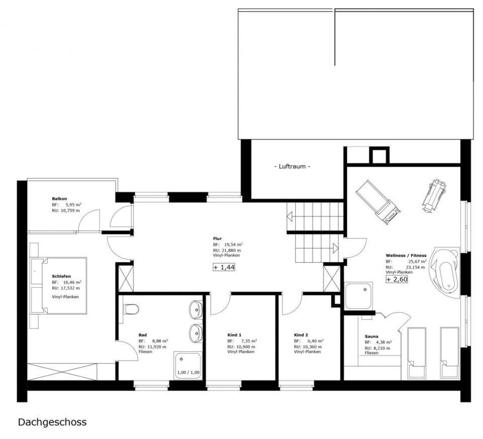 Das exklusive Feriendomizil mit seiner stilvollen, modernen Einrichtung verfügt auf 4 Halbgeschossen über 1 hochwertig ausgestattete Küche, 1 kombinierten Wohn-/Essraum, 4 Schlafräume, 2 Bäder en suite, 1 Vollbad mit Spa-Bereich sowie einen ca. 2000 m² großen, weitläufigen Garten, wovon ca. 1000 m² komplett eingezäunt sind.