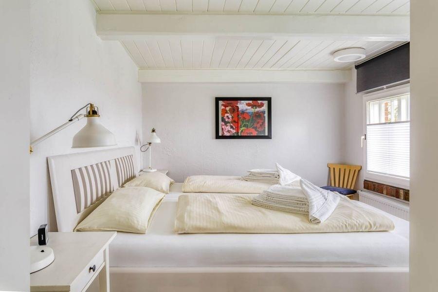 Im Ferienhaus gibt es vier gemütliche Schlafzimmer. Eines im Erdgeschoss, ausgestattet mit einem bequemen Doppelbett (180cm x 200cm).