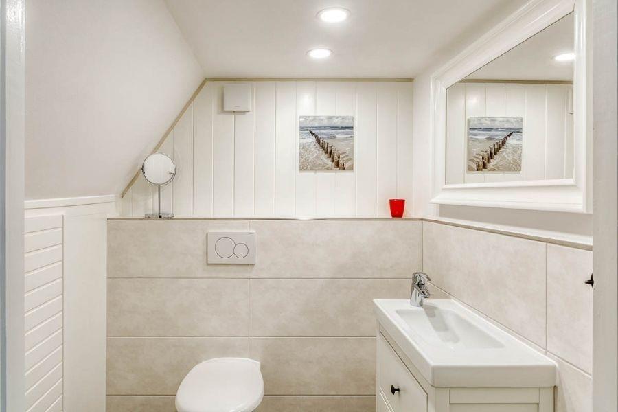 Im Obergeschoss des Ferienhauses befindet sich ein weiteres WC.