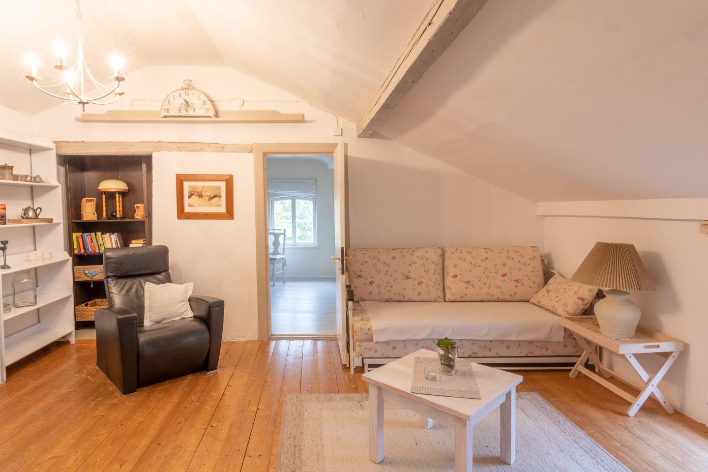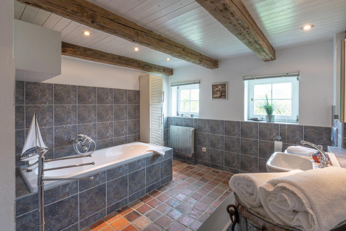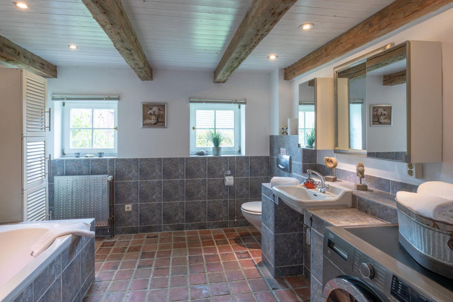 Die geräumigen und schicken Duschbäder runden das Bild ab. Zur Ausstattung gehört auch eine Waschmaschine. Zu dem Haus gehört ein großer, eingezäunter Garten mit altem Baumbestand, eine Spielecke für Kinder, eine Terrasse mit Gartenmöbeln, auf der Sie den Tag ausklingen lassen können.
