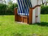 Auf der sonnigen Terrasse mit den Gartenmöbeln, zwei Strandkörben und einem Grill können Sie den Tag entspannt ausklingen lassen.