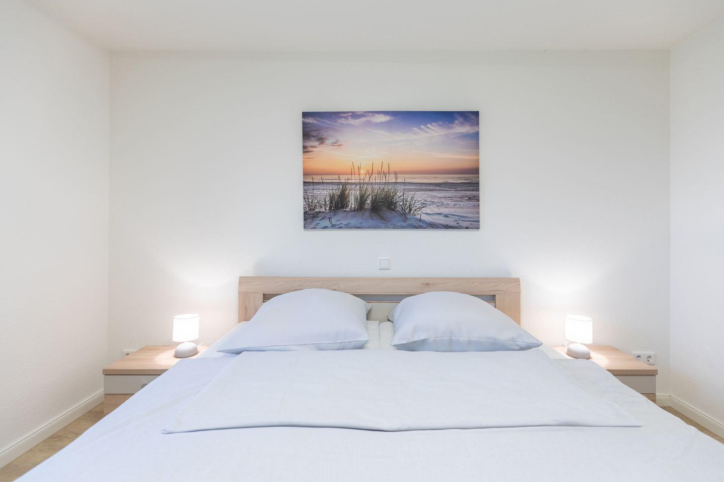 Ein Schlafzimmer im Erdgeschoss mit einem Doppelbett (180 x 200 cm).
