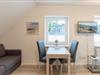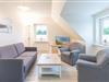 Beide Wohnzimmer sind mit ausziehbaren Schlafsofas ausgestattet und bieten zusätzliche Schlafmöglichkeiten. Alle Wohnbereiche verfügen über einen Fernseher, für gesellige Abende. Am ausziehbaren Esstisch in der unteren Wohnung kann die Gruppe gemeinsam zusammen sitzen.