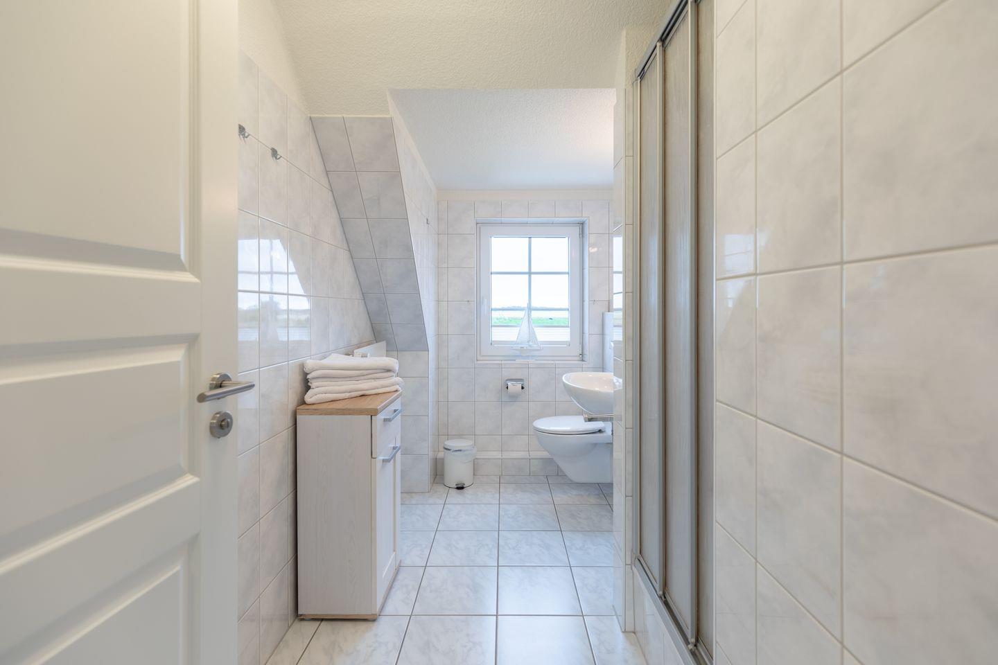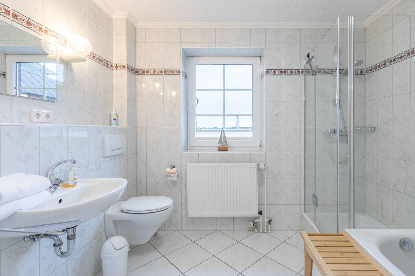 Drei Duschbäder mit WC und einer Badewanne im Erdgeschoss.