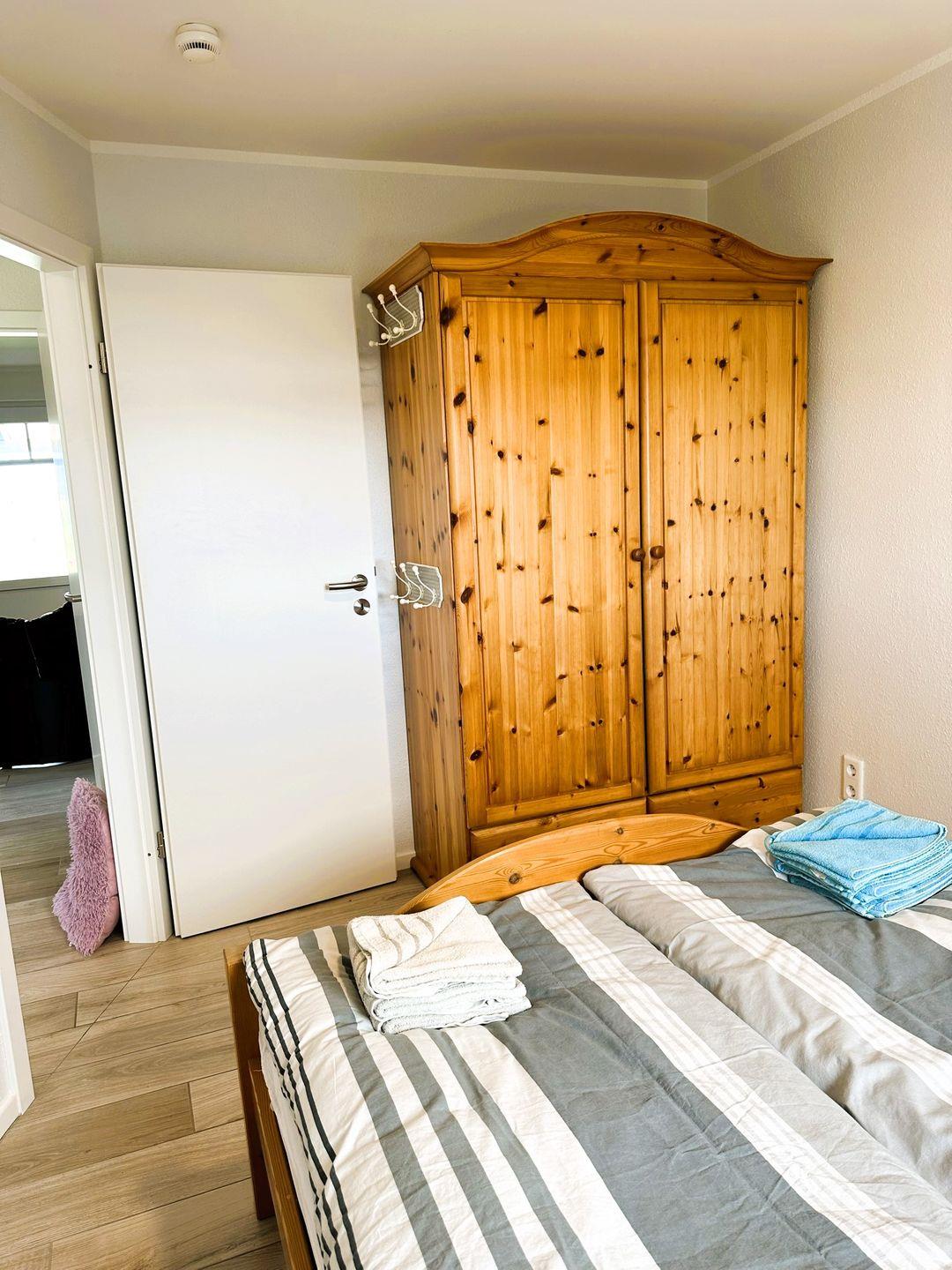 Das Ferienhaus ist komplett mit einem 1m hohen Doppelstabmattenzaun eingezäunt, sodass Sie und Ihre Lieben sich ungestört und sicher auf dem Grundstück bewegen können. Es bietet Platz für bis zu acht Personen in drei komfortablen Schlafzimmern. Im ersten Schlafzimmer befindet sich ein Bett der Größe 140 x 200cm. Das zweite Schlafzimmer ist mit einem 180 x 200cm großen Bett ausgestattet und im dritten Schlafzimmer steht ein Etagenbett der Größe 80 x 180cm zur Verfügung. Hier können Sie sich nach einem ereignisreichen Tag an der Nordsee ausruhen und erholsame Nächte verbringen.
