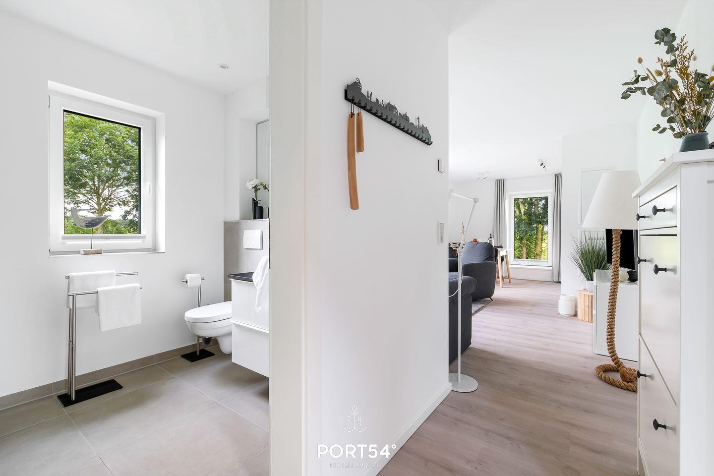 Diese bezaubernde 49m² große, lichtdurchflutete Ferienwohnung in idyllisch ruhiger Lage, bietet Ihnen einen offenen Wohn-/Essbereich mit integrierter voll ausgestatteter Küche, ein Schlafzimmer mit einem Doppelbett & ein Badezimmer, das über eine ebenerdige Dusche verfügt. Ein Schlafsofa bietet weitere Schlafmöglichkeiten. Das absolute Highlight: Eine Sonnenterrasse mit Elektrogrill und einem Gemeinschaftsgarten, hier können Sie herrliche Stunden an der frischen Nordseeluft verbringen.