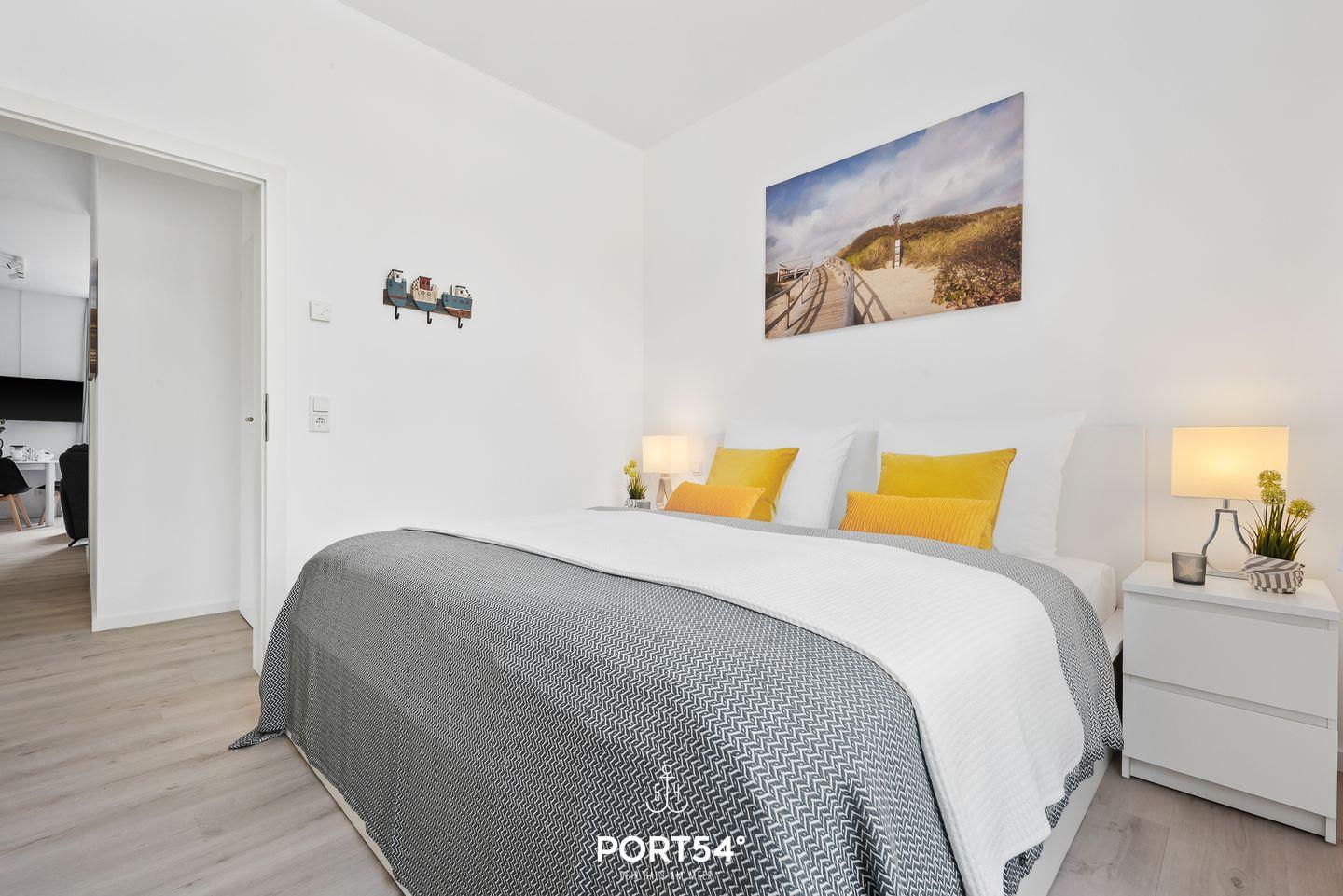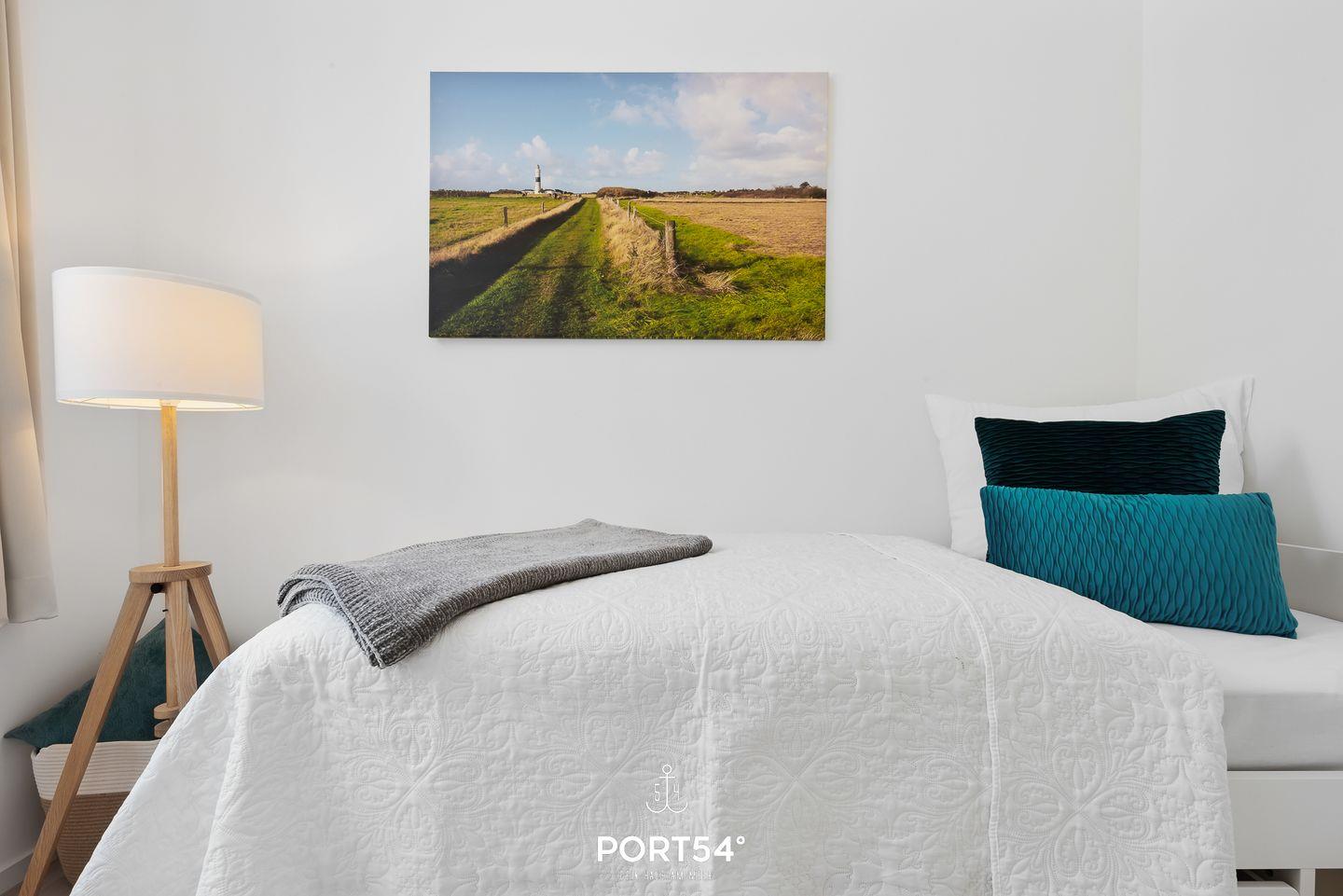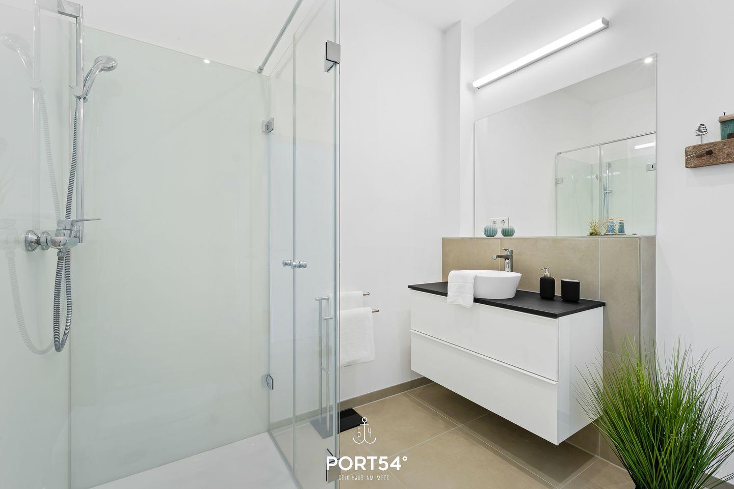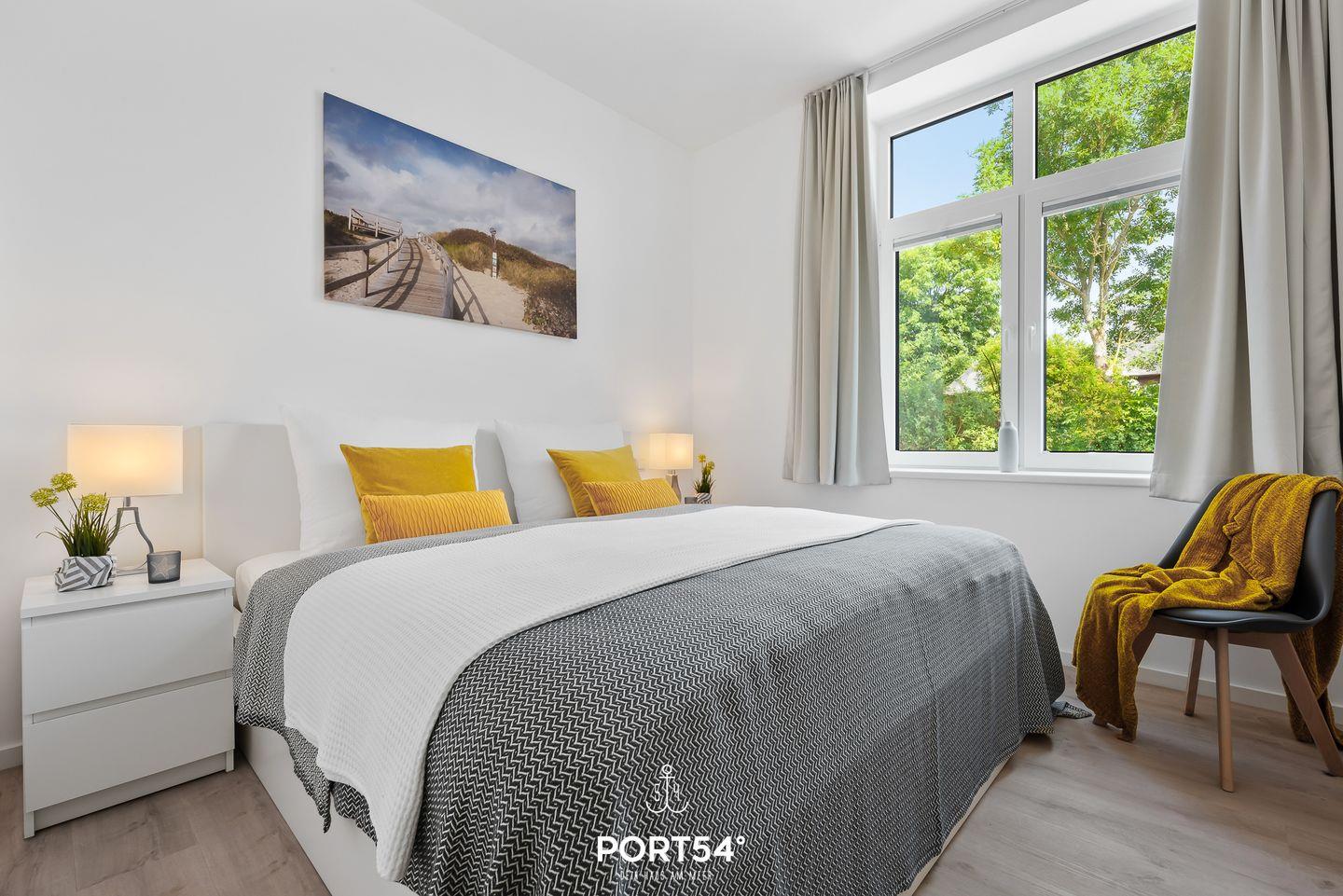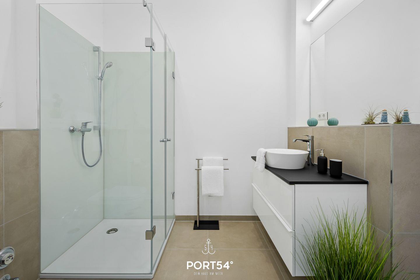 In dem geräumigen und lichtdurchfluteten Wohnzimmer können Sie es sich gemütlich machen. Die offene Küche ist modern und voll ausgestattet, sodass Sie hier wunderbar gemeinsam kochen können. Die Schlafzimmer sind hochwertig eingerichtet, eins der Schlafzimmer verfügt über ein Doppelbett (180x200cm), die anderen beiden über ein Einzelbett mit Auszug. Eine weitere Schlafmöglichkeit für 2 Personen bietet das Schlafsofa im gemütlichen Wohnzimmer. Das helle und stilvolle Badezimmer ist mit einer Dusche ausgestattet. Auf der angrenzenden Sonnenterrasse mit Gemeinschaftsgarten können Sie herrliche Stunden an der frischen Nordseeluft verbringen. Ein Elektrogrill steht Ihnen für gesellige Grillabende zur Verfügung.