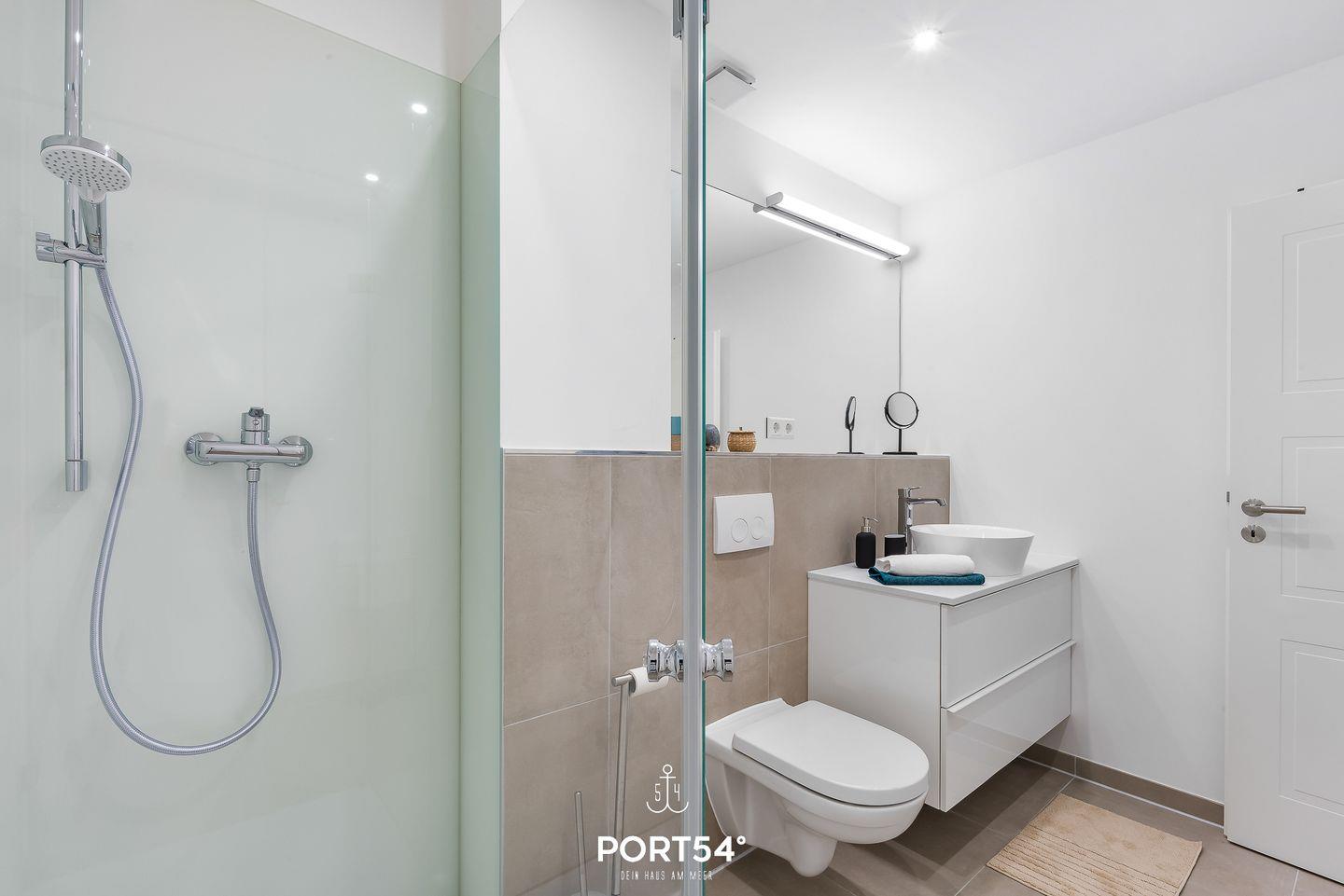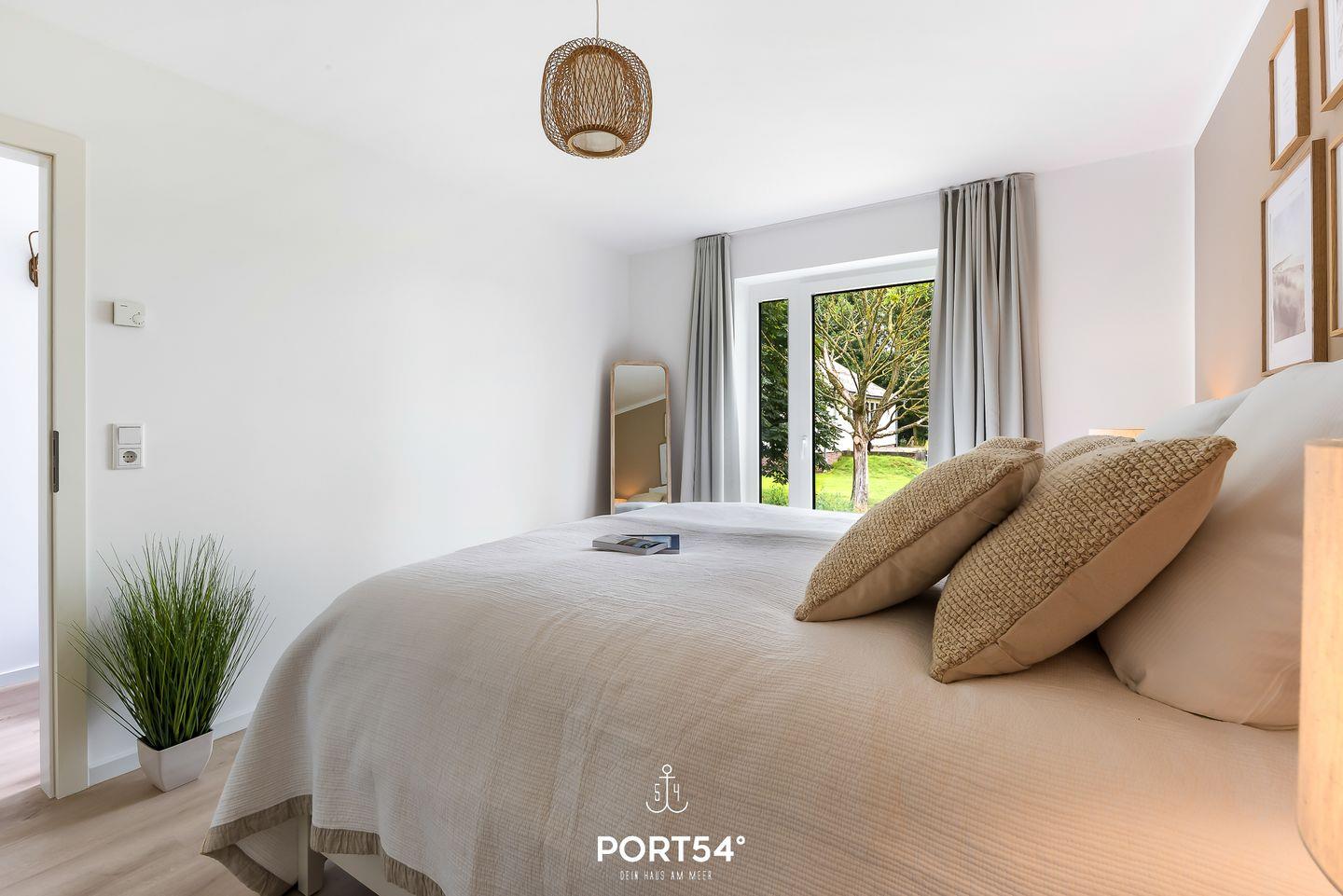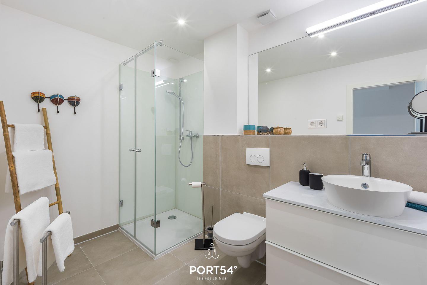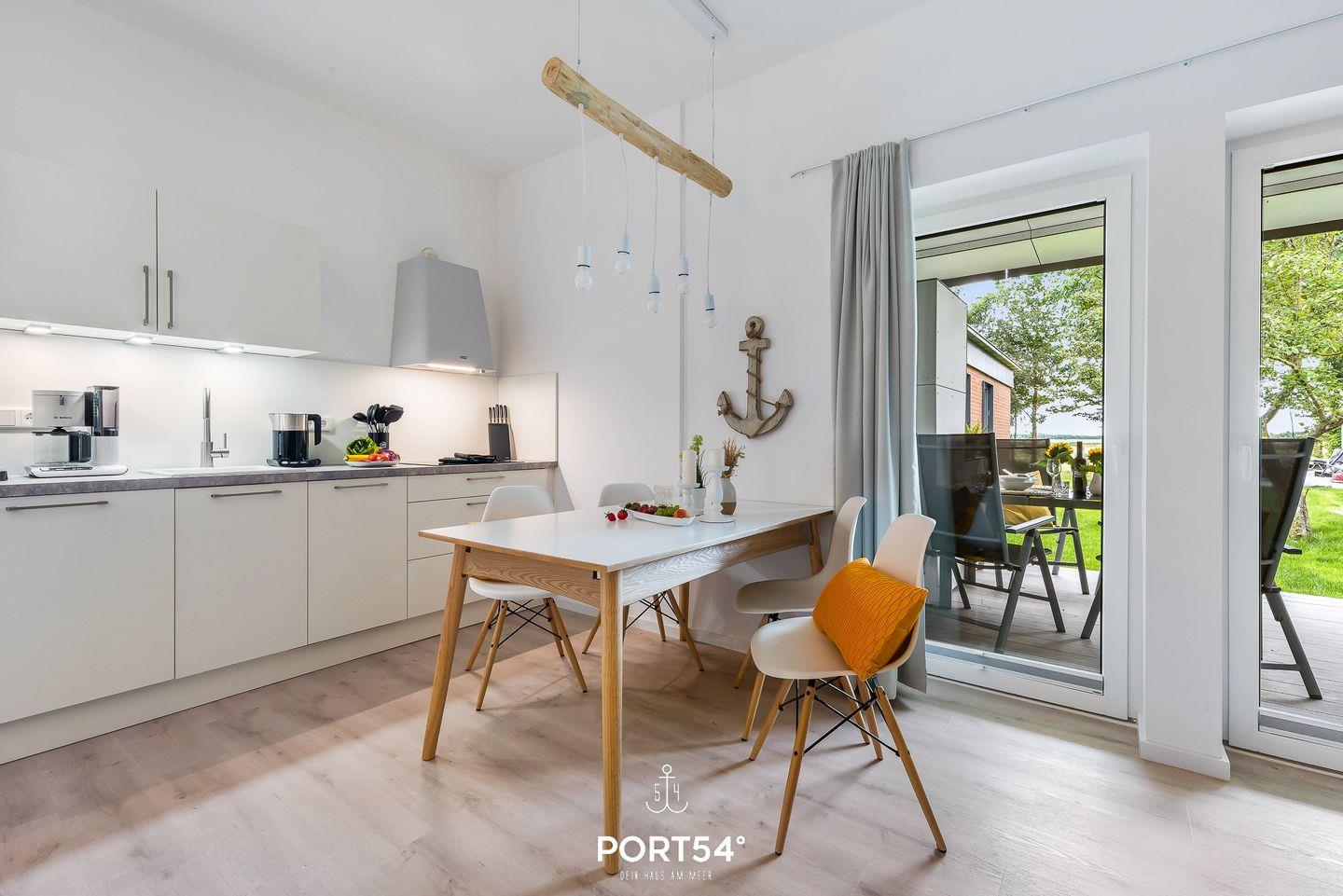 In dem geräumigen Wohnzimmer mit offener Küche können Sie es sich gemütlich machen. Die Küche ist modern und voll ausgestattet, sodass Sie hier wunderbar kochen können. Die beiden Schlafzimmer sind hochwertig eingerichtet und verfügen über ein Doppelbett und ein Etagenbett (90x200cm). Für weitere 2 Personen steht im Wohnzimmer ein gemütliches Schlafsofa zur Verfügung. Das helle Badezimmer hat eine ebenerdige Dusche. Zusätzlich gibt es noch ein Gäste-WC. Die gesamte Wohnung verfügt über eine Fußbodenheizung. Auf der angrenzenden Sonnenterrasse mit Gemeinschaftsgarten können Sie herrliche Stunden an der frischen Nordseeluft verbringen. Für gesellige Grillabende steht ein Elektrogrill zur Verfügung.