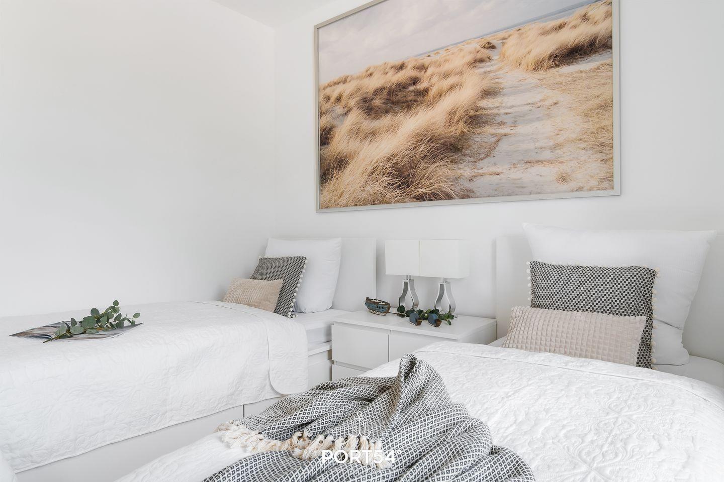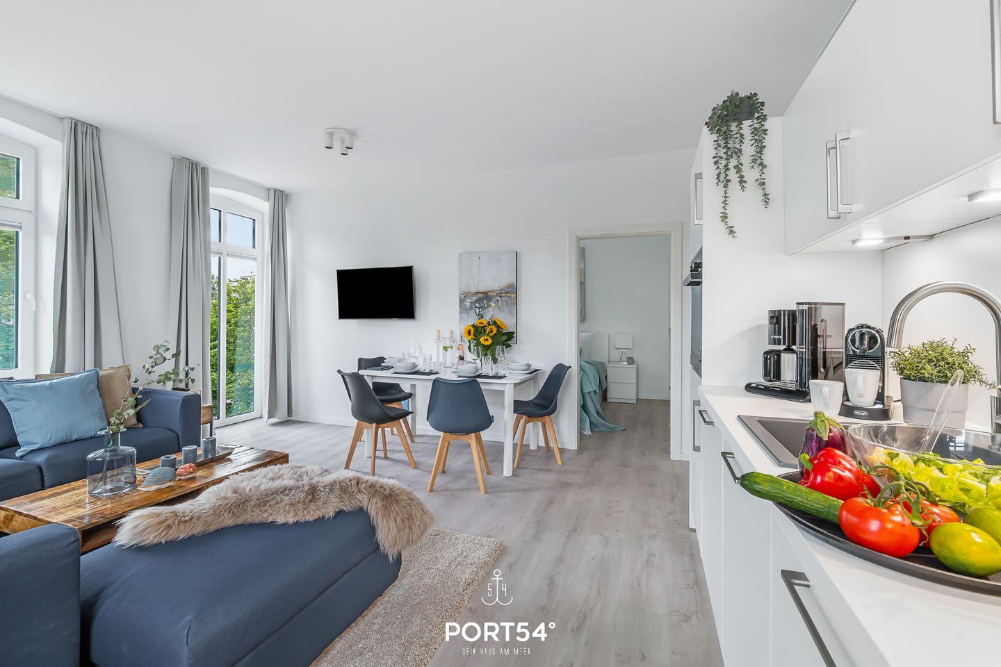 In dem geräumigen Wohnzimmer mit offener Küche können Sie es sich gemütlich machen. Die Küche ist modern und voll ausgestattet, sodass Sie hier wunderbar kochen können. Die beiden Schlafzimmer sind hochwertig eingerichtet. Eines der Zimmer verfügt über ein Doppelbett (180x200cm), das andere über 2 Einzelbetten (90x200cm). Für weitere 2 Personen steht im Wohnzimmer ein gemütliches Schlafsofa zur Verfügung. Das helle Badezimmer hat eine Dusche. Auf dem angrenzenden Balkon können Sie herrliche Stunden an der frischen Nordseeluft verbringen. Ein Elektrogrill für gesellige Grillabende steht Ihnen ebenfalls zur Verfügung.