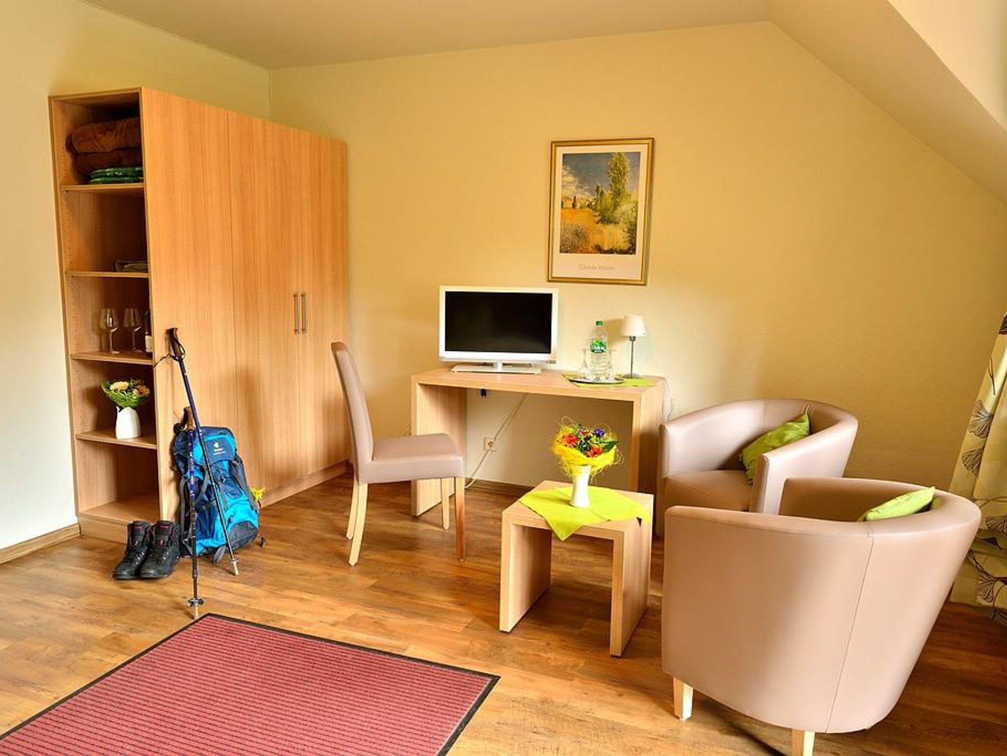 Neue, gemütlich eingerichtete Zimmer und Ferienwohnungen in ruhiger und familiärer Atmosphäre. Mitten im Wald gelegen mit Spielplatz, fernab von Lärm und Straßenverkehr. Überall liegt ein Hauch von Abenteuer. Es wird Ihnen bei uns gut schmecken, dass macht die frische Luft und die gute Küche aus. Wir bieten Ihnen ÜF oder Essen in unserem à la carte-Restaurant an, sowie Brötchenservice.