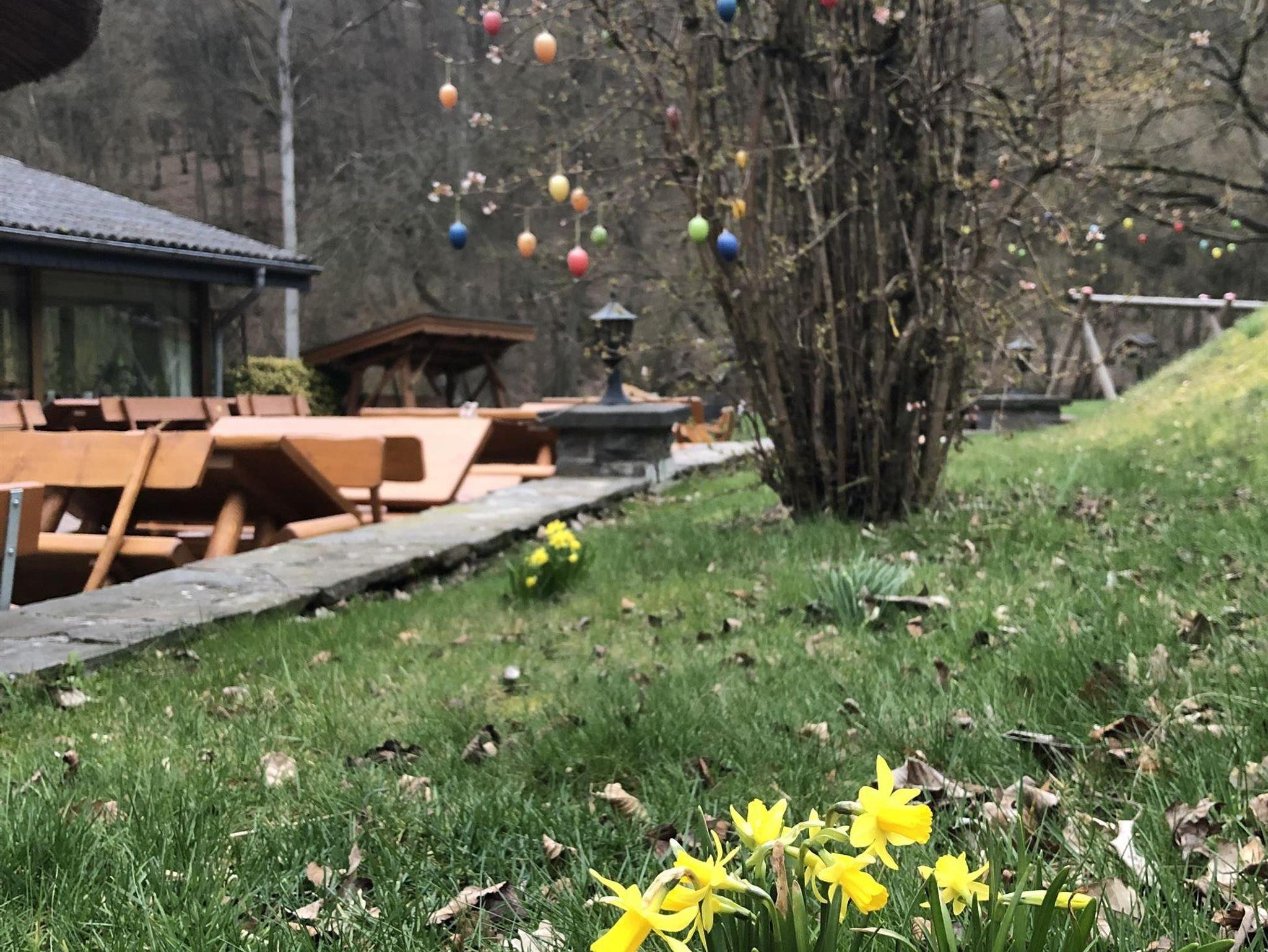 Neue, gemütlich eingerichtete Zimmer und Ferienwohnungen in ruhiger und familiärer Atmosphäre. Mitten im Wald gelegen mit Spielplatz, fernab von Lärm und Straßenverkehr. Überall liegt ein Hauch von Abenteuer. Es wird Ihnen bei uns gut schmecken, dass macht die frische Luft und die gute Küche aus. Wir bieten Ihnen ÜF oder Essen in unserem à la carte-Restaurant an, sowie Brötchenservice.