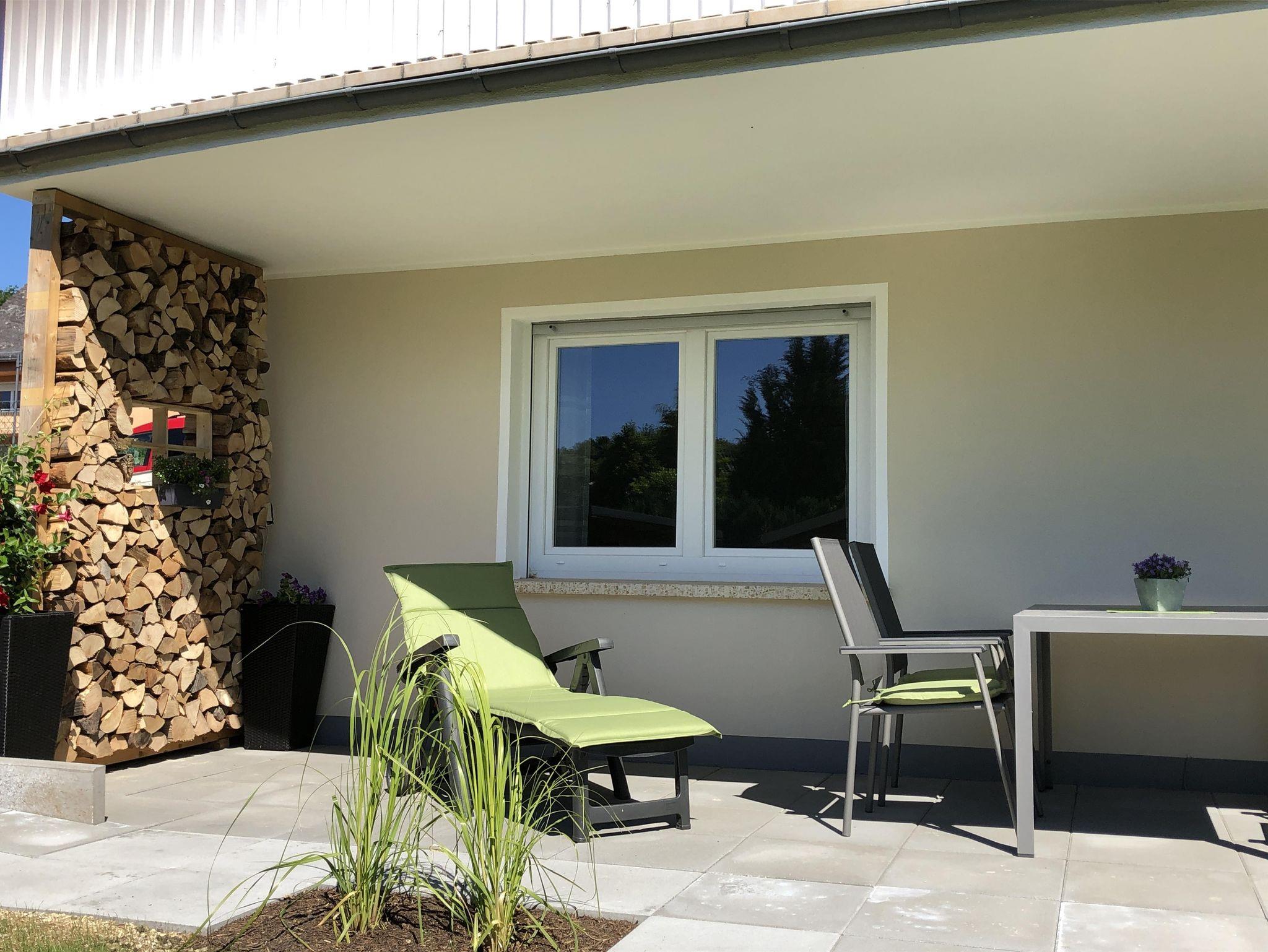Unsere modern und komfortabel eingerichtete Ferienwohnung ist stufenlos erreichbar, verfügt über einen eigenen Eingang, eine möbilierte Süd-Terrasse sowie einen großen Garten. Mit ihrer Größe von 55qm ist sie ideal für 2 Gäste. Aber dank der Schlafcouch oder einem Baby-Reisebett ist auch eine Belegung mit 2 Erwachsenen und 1 Kind möglich. Zum Abstellen von Fahrrädern gibt es ein abschließbares Gartenhaus mit Stromanschluss.
