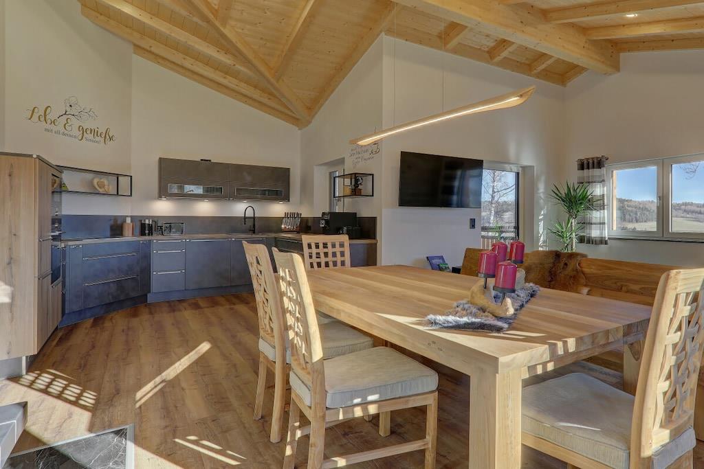 • Landhuset Rachelblick er et moderne og luksuriøst møbleret feriehus i den Bayerske Skov med plads til op til 6 personer. Det er fordelt på to etager og tilbyder et vidunderligt sted at slappe af og undslippe hverdagens travlhed. For et strejf af velvære under din ferie kan du nyde den private finske sauna med afslapningsrum og spabadet på terrassen, som byder på en smuk udsigt over engene og skovene i den Bayerske Skov. • Find ud af her, hvad der ellers venter dig under en ferie i vores hytte. Vi glæder os til at byde dig velkommen!