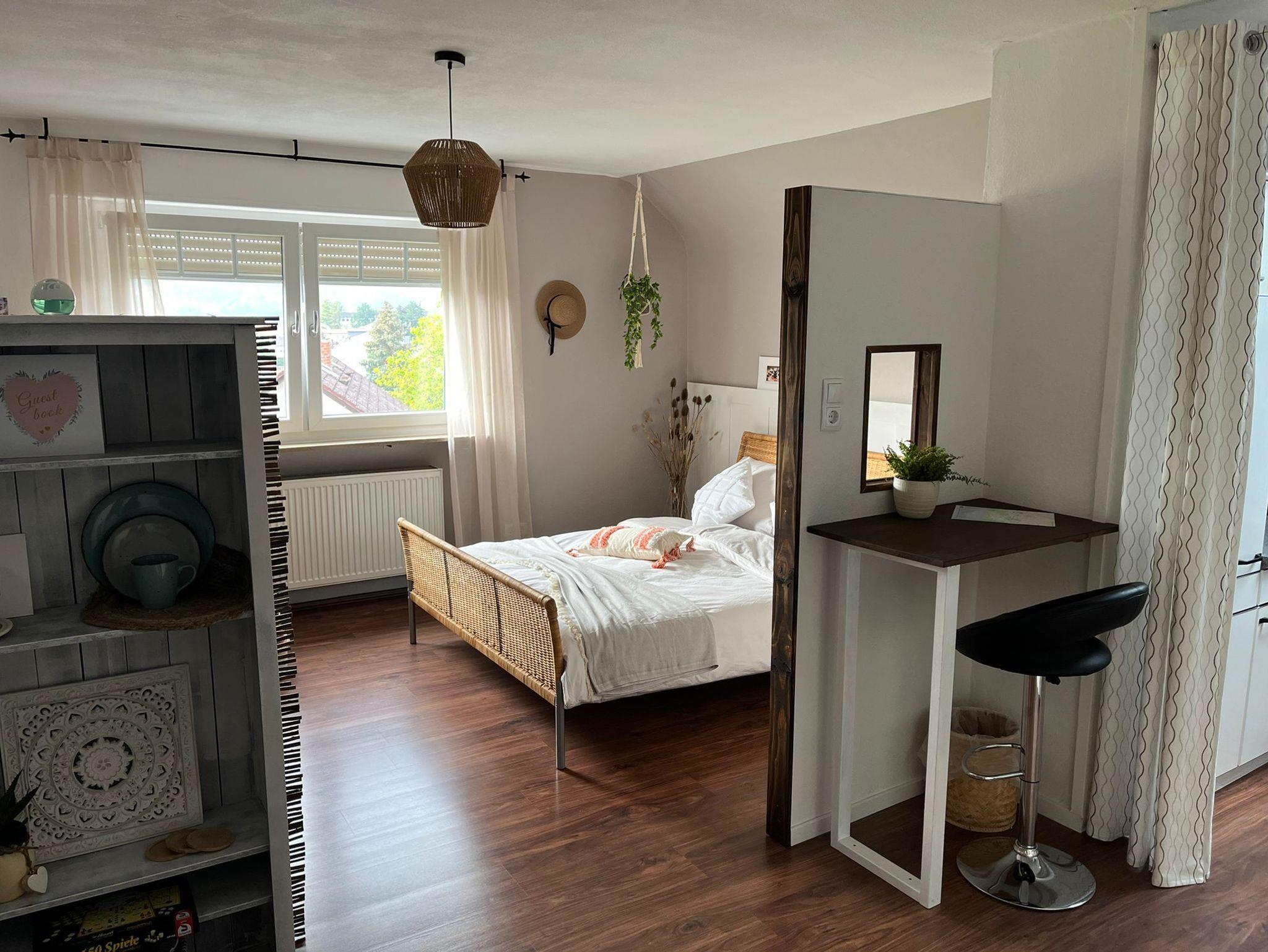 Sie wohnen in einem Mehrfamilienhaus in der oberen Etage mit freiem Blick aufs Erbacher Schloss, die Stadt und dessen Umgebung. Wir haben 2022 das Studio für Sie neu renoviert und mit viel Liebe zum Detail eine kleine Ruhe Oase geschaffen.