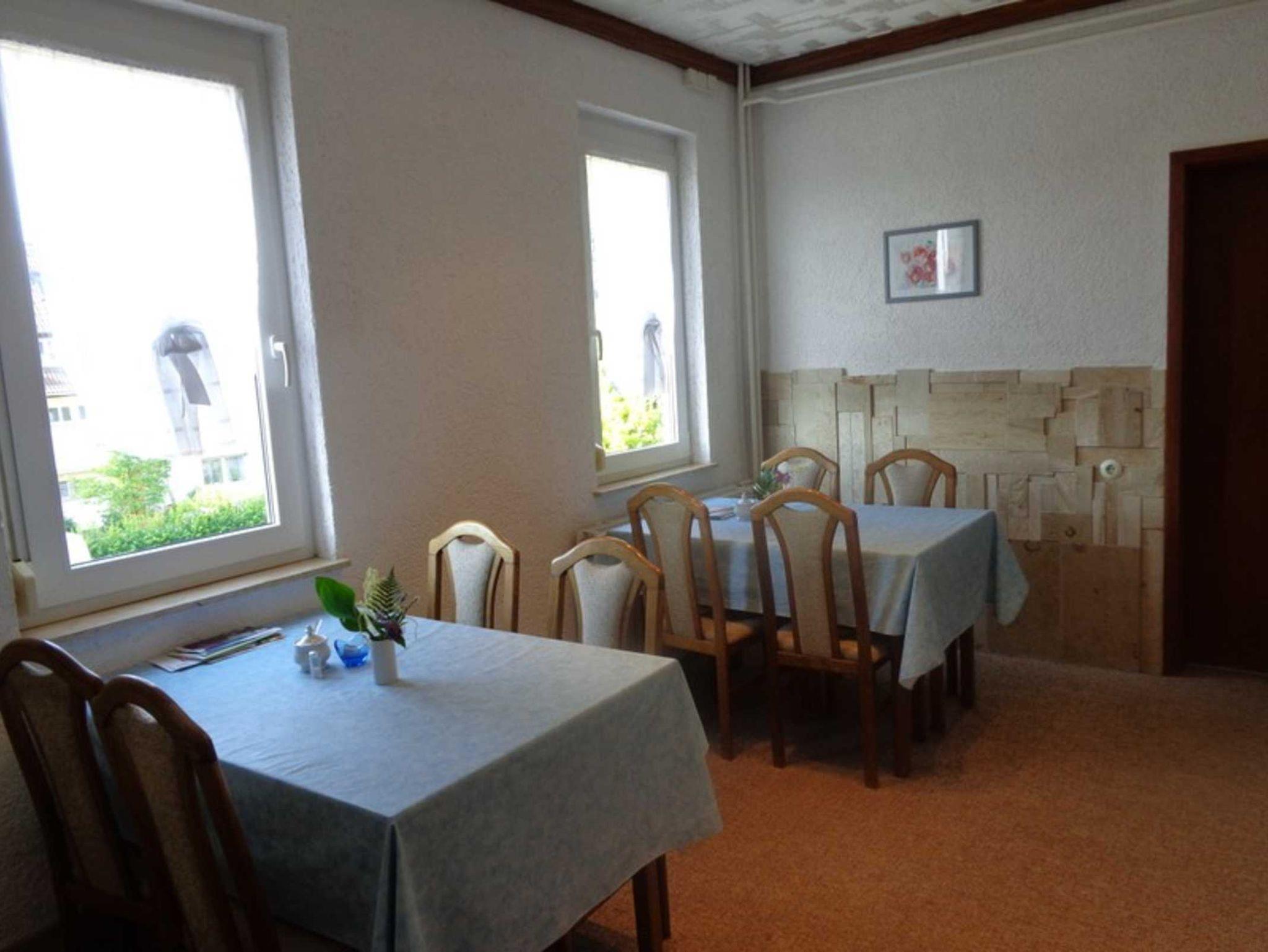 Das Frühstück wird im Frühstücksraum gereicht- hier können die Kaffeemaschine und der Kühlschrank auch von Gästen genutzt werden.