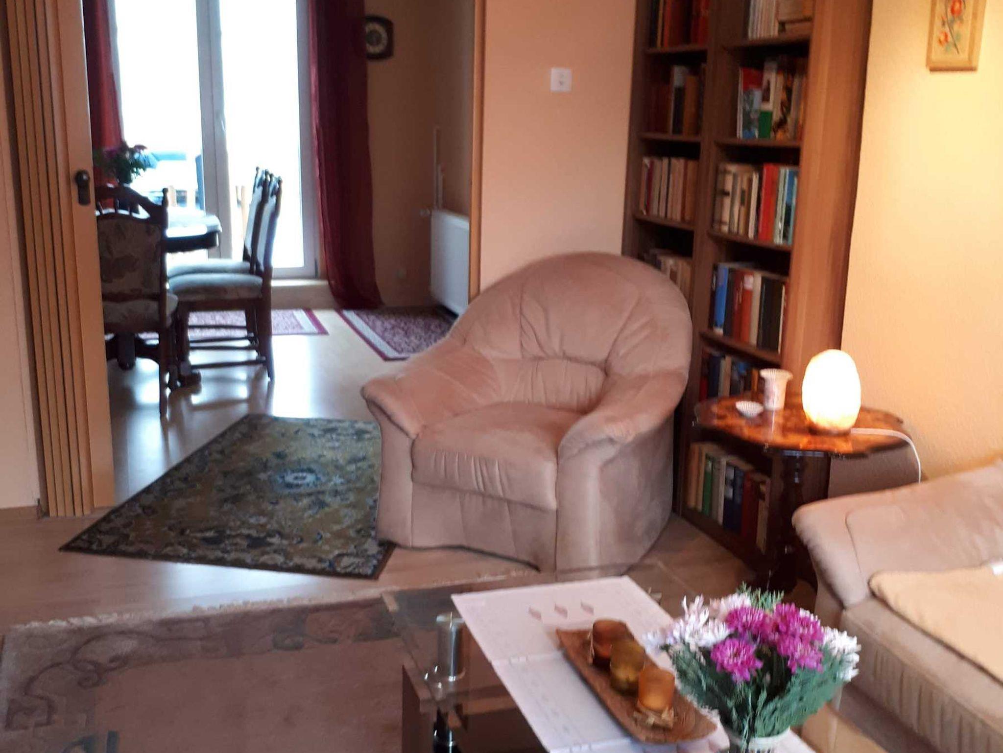 Unsere 70 m² große Ferienwohnung befindet sich in der 1.Etage eines Zweifamilienhauses. Sie ist liebevoll eingerichtet und liegt in einem ruhigen Wohngebiet im Osten unserer Landeshauptstadt. Einkaufsmöglichkeiten sind in der Nähe. Die Innenstadt erreichen Sie mit öffentlichen Verkehrsmitteln in 10 Minuten. Egal ob Sie zur Messe, zum egapark, in die neue Oper wollen oder nur einen Stadtbummel durch Erfurt unternehmen möchten - von Ihrer Ferienwohnung aus ist das alles ohne Probleme möglich. Durch die gute Verkehrsanbindung zur Autobahn sind Sie auch in kürzester Zeit in der Dichterstadt Weimar (30 Minuten) und im Thüringer Wald (1 Stunde). Wir freuen uns auf Ihren Besuch.