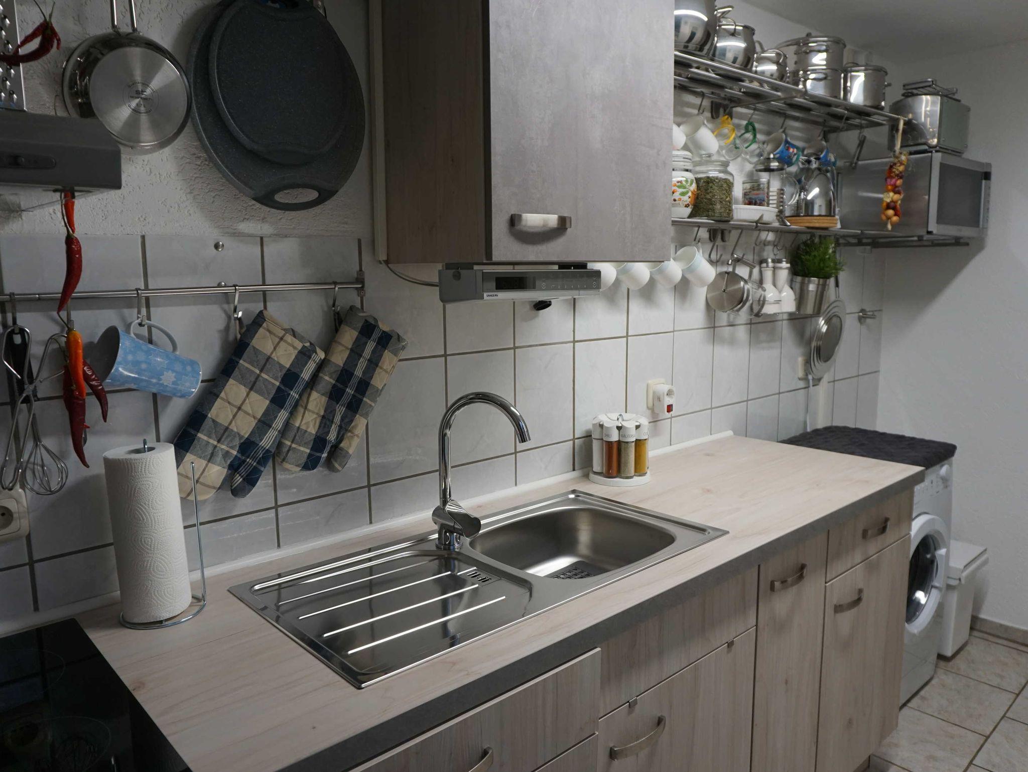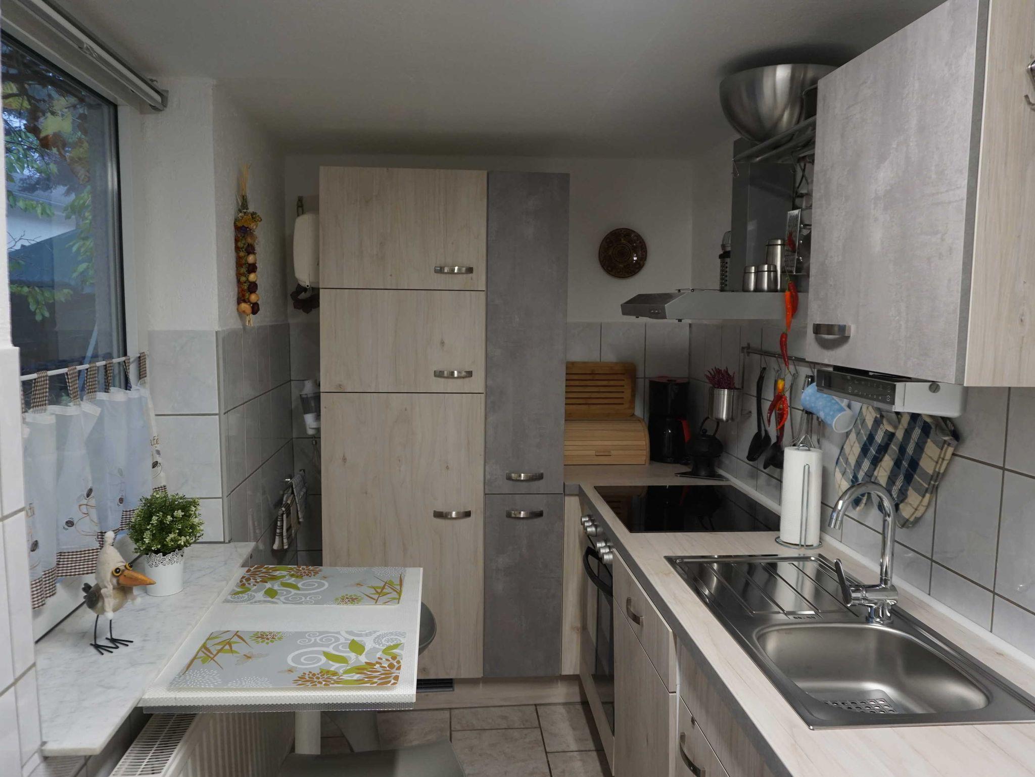 Küche mit 4er Cerankochfeld, Backofen, Kühlschrank, Geschirrspüler,