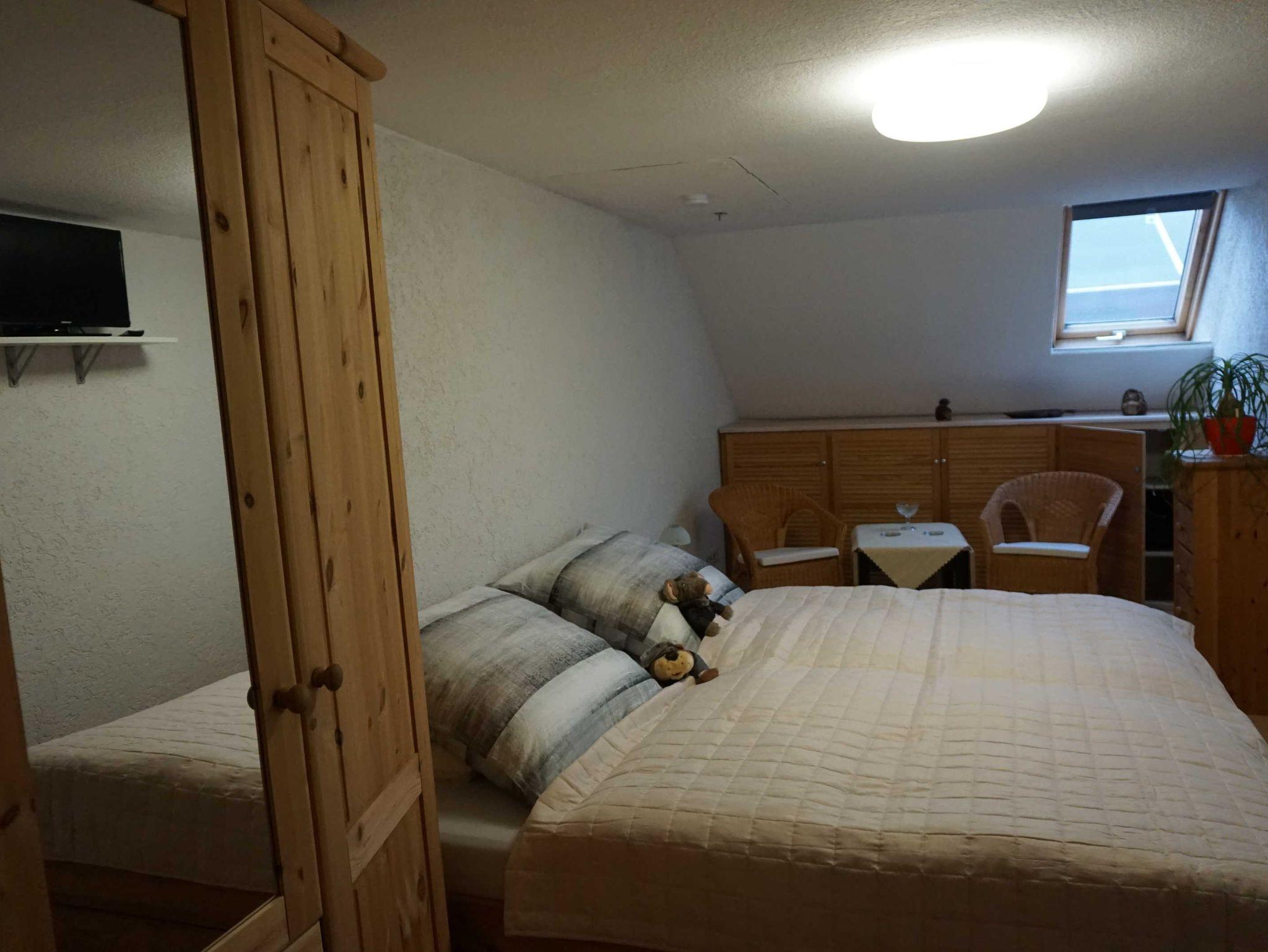 1 Schlafzimmer 1.OG mit Doppelbett, TV und Sitzgelegenheit