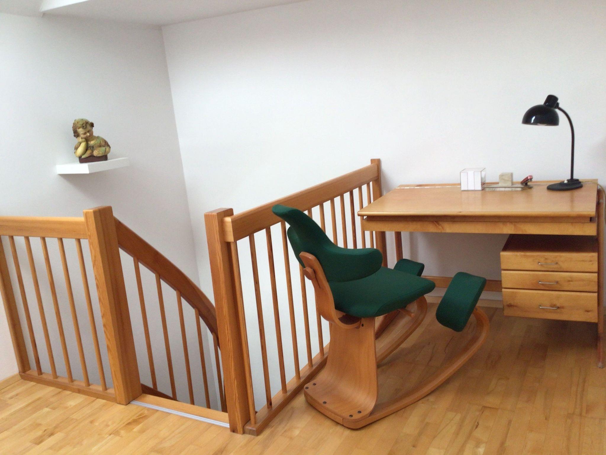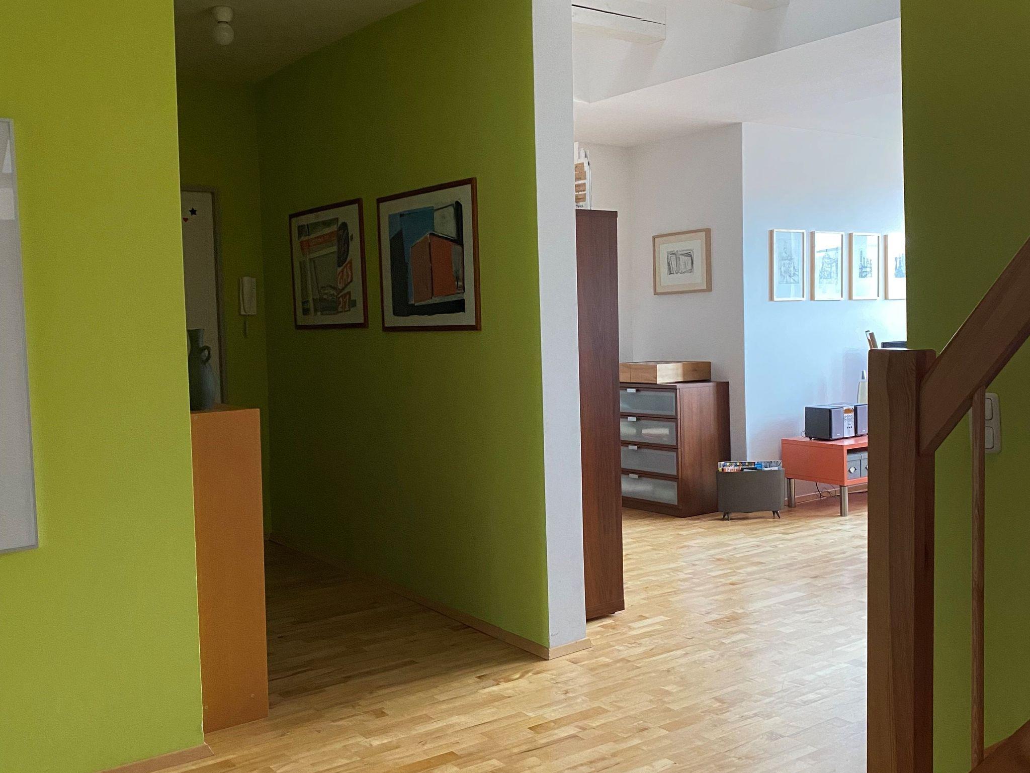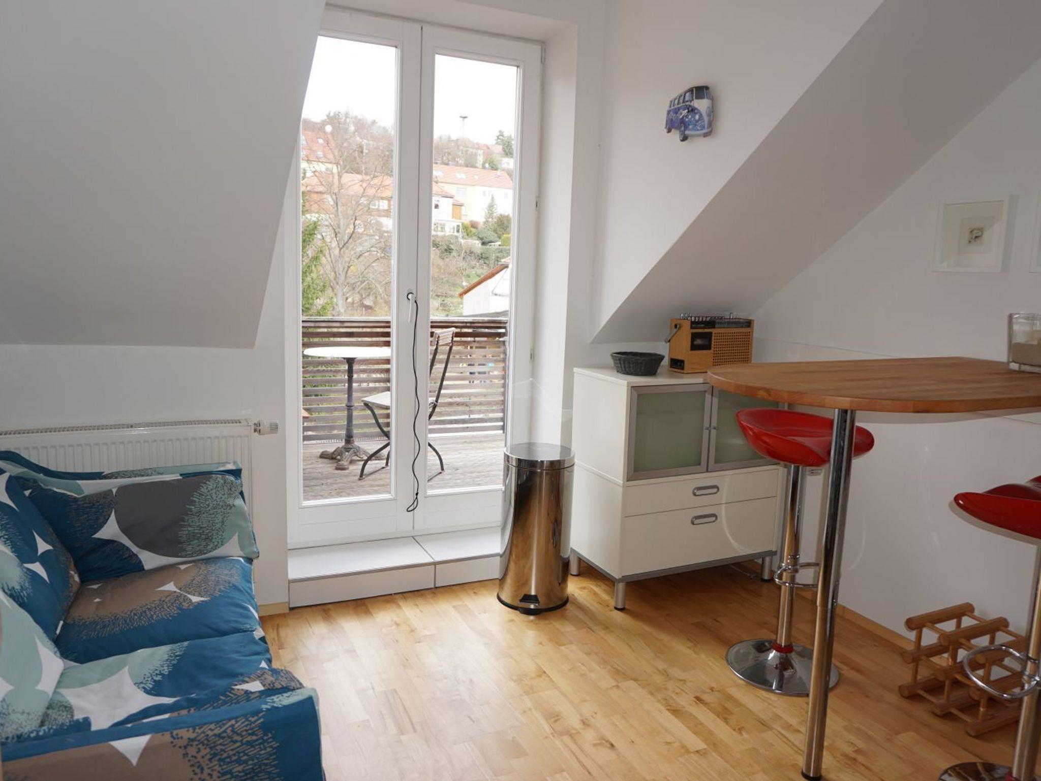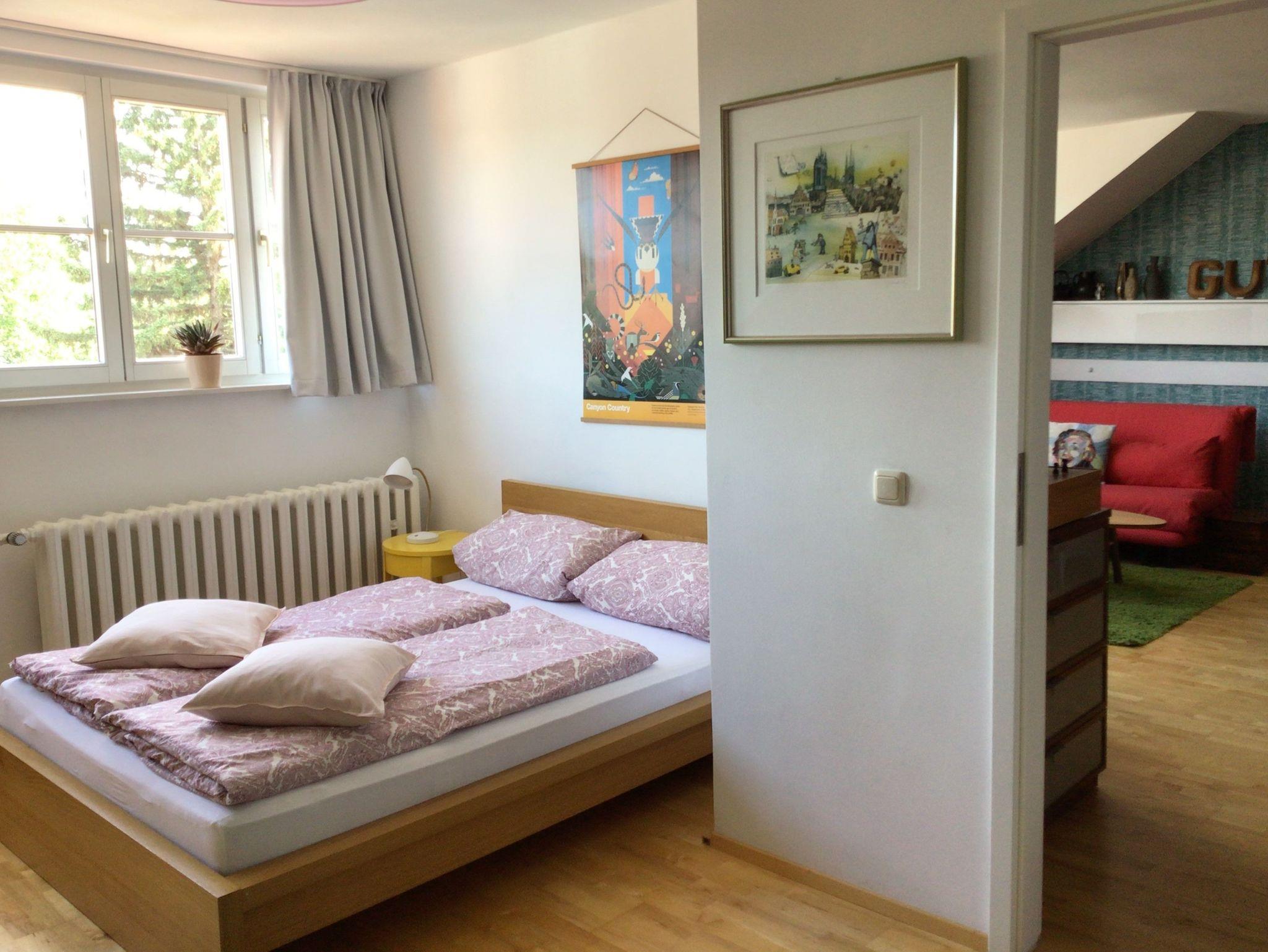 Unser Haus wurde 2009 liebevoll saniert und hat im Obergeschoss für 4 Personen eine im Designerstil geschmackvoll eingerichtete Nichtraucher-Maisonettewohnung mit Balkon. Die Wohnung ist 90m² groß, hat eine komfortabel eingerichtete Küche, ein geräumiges Badezimmer mit separater Dusche und ein großzügiges, sonniges Wohnzimmer mit einem bequemen Schlafsofa (1,60 m breit ). Vom Wohnzimmer kommt man in das 20m² große Schlafzimmer mit einem kleinen Doppelbett (1,40 m breit). Auf der Galerieetage befindet sich ein Einzelbett und ein kleiner Schreibtisch.