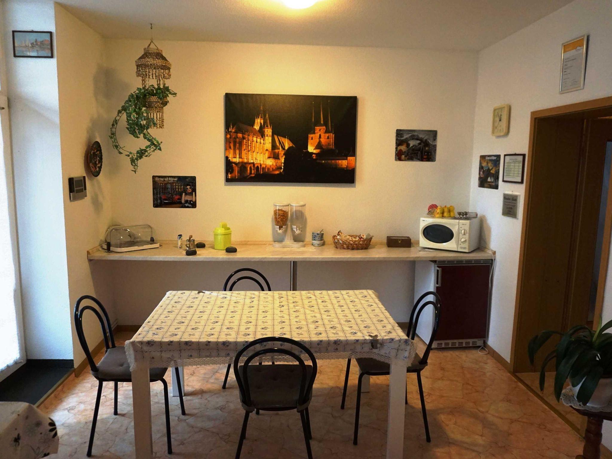 Unser Haus liegt zentrumsnah und verfügt über eine sehr gute Anbindung an den öffentlichen Nahverkehr. Auch Veranstaltungsorte wie Messehalle, Thüringenhalle, Dom und Theater liegen unweit unserer Gästezimmer. Wir verfügen über 2 Gästezimmer für je 2 Personen und eine Ferienwohnung.Eine Aufbettung in den Gästezimmern ist jeweils für eine 3. Person möglich. Das Frühstück für 8,00 € pro Person ist vor Ort gern zubuchbar
