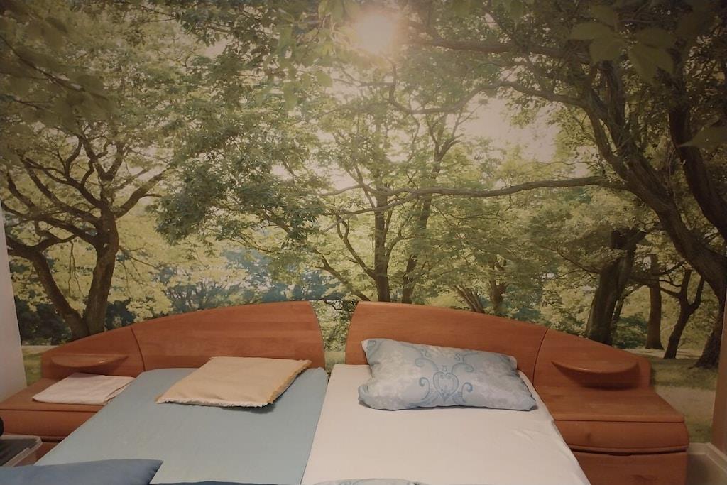 Stueetage: (Køkken(spisebord, kakkelovn, elkedel, kaffemaskine, ovn, køleskab, ), stue / spisestue(, Fjernsyn, pejs), soveværelse(, , dobbeltseng, Fjernsyn, radio), badeværelse(, toilet, bruser, håndvask, varme)) Kælderetage: (soveværelse(, , dobbeltseng, Fjernsyn, radio, varme), soveværelse(, , dobbeltseng, Fjernsyn, radio, varme)) , , , , Internetadgang, Internetadgang, Førstehjælp, vaskemaskine, varme, terrasse(, havemøbler, solstole), parkering, strygebræt, strygejern, tørreskab