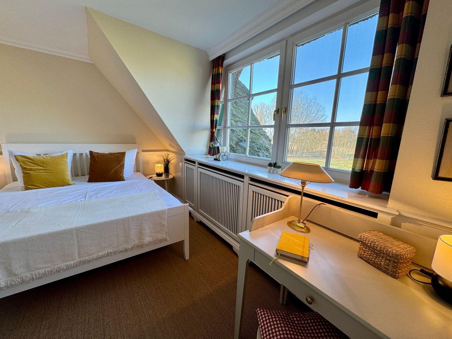 Das wunderschöne Maisonetteappartement ist für max. 4 Personen geeignet und befindet sich in einem Reetdachhaus in bester Lage direkt am Bodstedter Bodden. Die Wohnfläche von insgesamt 59 m² erstreckt sich über 2 Etagen. Im unteren Bereich befindet sich das gemütliche Wohnzimmer im "Darßer Stil" mit einer offenen Küche und dem Zugang zu der großen Terrasse mit Boddenblick. Im oberen Bereich befinden sich dann beide Schlafzimmer mit jeweils einem großen Doppelbett sowie das Badezimmer mit Dusche. In einem der Schlafzimmer befindet sich des weiteren ein kleiner Arbeitsplatz . Der direkte Zugang zur gepflegten Parkanlage mit eigenem Steg lädt zum Urlaubsfeeling ein. Der PKW-Stellplatz befindet sich direkt auf dem Grundstück der Ferienanlage und steht Ihnen genau wie das W-Lan kostenlos zur Verfügung.