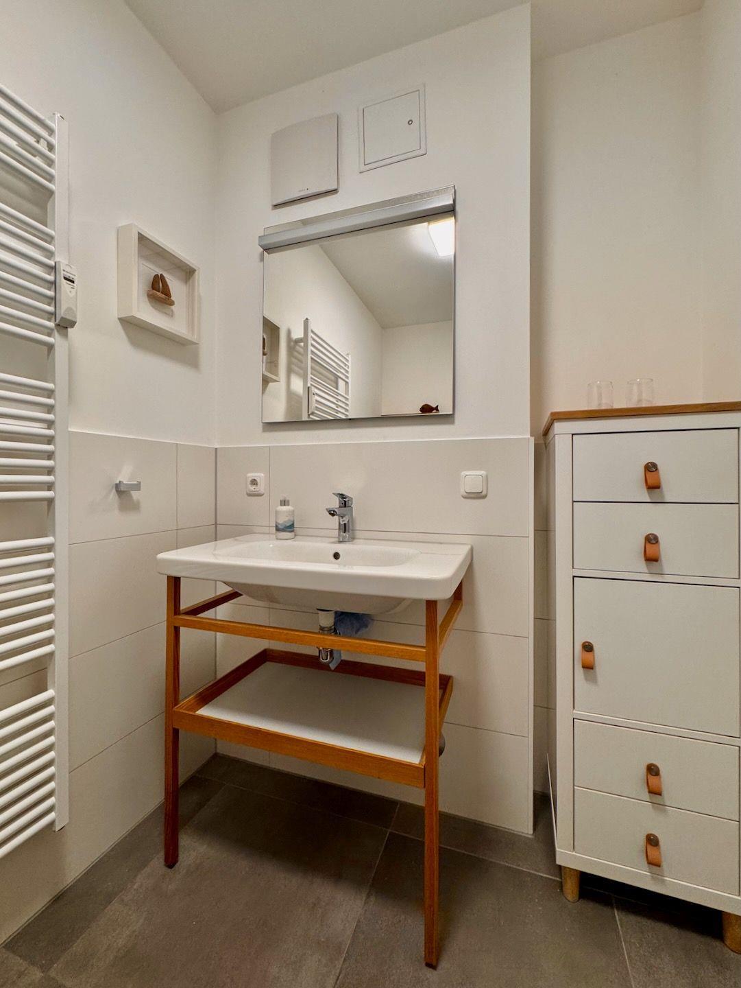 Dieses komfortable Appartement bietet auf 55 m² Platz für maximal vier Personen und ist ideal für einen entspannten Urlaub. Es verfügt über ein Wohnzimmer mit integrierter Küchenzeile, sowie über zwei Schlafzimmer: eines mit Doppelbett und eines mit einem Ausziehbett (1,60 m), das zusätzlichen Schlafplatz bietet. Das Badezimmer ist mit einer Dusche und einem WC ausgestattet. Das Appartement wurde in den letzten Jahren liebevoll saniert und befindet sich in einem modernen, sehr gepflegten Zustand. Die Küche und das Bad sind hochwertig und zeitgemäß ausgestattet. Die nach Süden ausgerichtete Terrasse lädt den ganzen Tag über zum Sonnenbaden und Entspannen ein. Vom Essplatz im Wohnbereich sowie von der Terrasse aus haben Sie einen schönen Blick auf den Bodden. Ein Pkw-Stellplatz (Nr. 28) befindet sich auf dem Grundstück der Ferienanlage und ist dem Appartement zugeordnet. Haustiere und Rauchen sind in diesem Appartement nicht gestattet. Für Ihren Aufenthalt steht Ihnen kostenloses WLAN zur Verfügung.