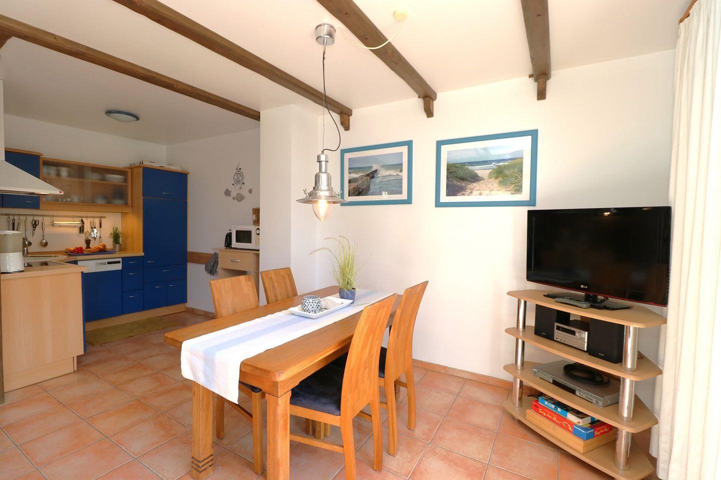 Dieses gemütliche Appartement im Erdgeschoss bietet auf 59 m² Platz für maximal 4 Personen und verfügt über einen separaten Eingang, der für zusätzlichen Komfort und Privatsphäre sorgt. Das Appartement umfasst ein Wohnzimmer mit integrierter Küchenzeile, die Ihnen ermöglicht, Ihre Mahlzeiten bequem zuzubereiten. Es gibt zwei Schlafzimmer: Ein Schlafzimmer mit Doppelbett und ein weiteres mit zwei Einzelbetten. Das Bad ist mit Dusche und WC ausgestattet. Für zusätzlichen Stauraum oder zum Abstellen von Fahrrädern oder Sportgeräten steht Ihnen ein abschließbarer Schuppen zur Verfügung. Die Südterrasse lädt zum Verweilen und Sonnenbaden ein – der perfekte Ort, um den Tag zu genießen. Ein Pkw-Stellplatz befindet sich direkt auf dem Grundstück und ist dem Appartement zugeordnet. Haustiere sind in diesem Appartement nicht gestattet, und das Rauchen ist nicht erlaubt. W-LAN steht Ihnen während Ihres Aufenthalts kostenlos zur Verfügung.