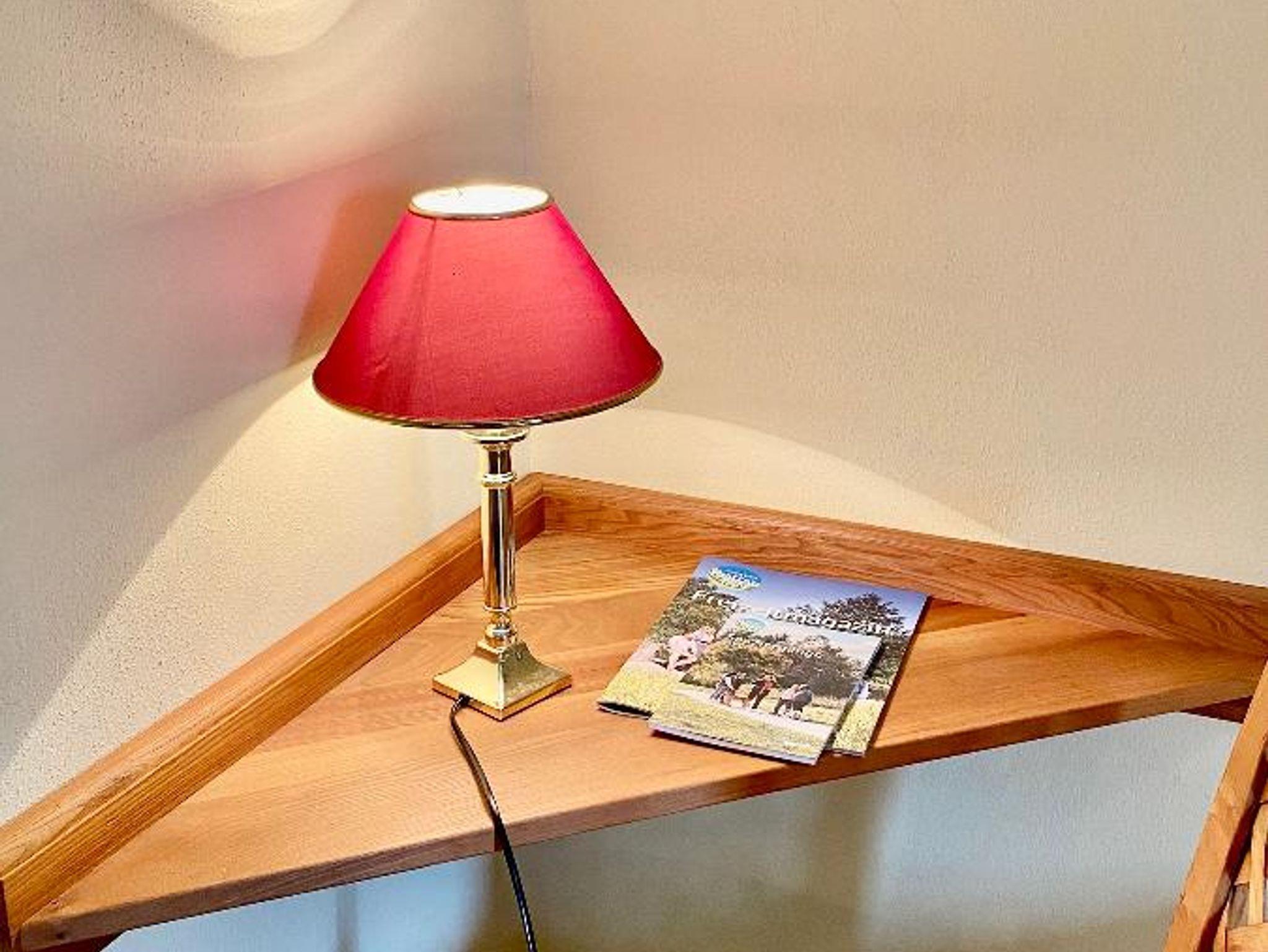 Das Zimmer mit 18 qm ist ausgestattet mit Tisch, Schrank, Stühle, Leselampe am Bett und extra Nachtischlampe.