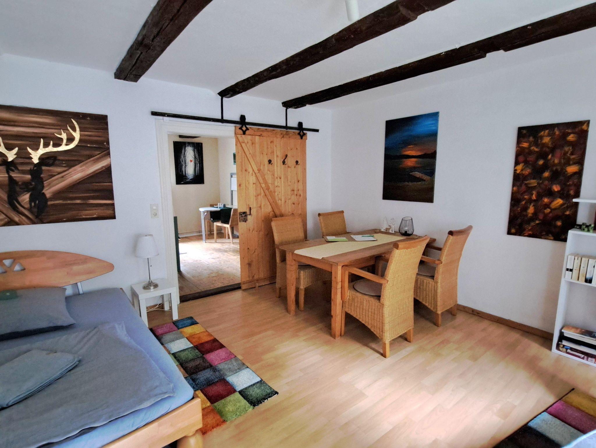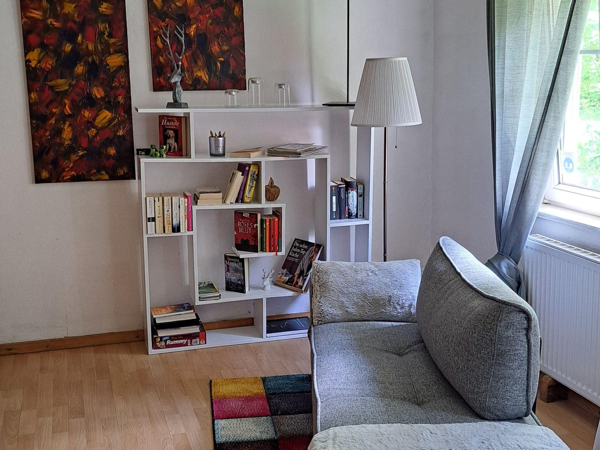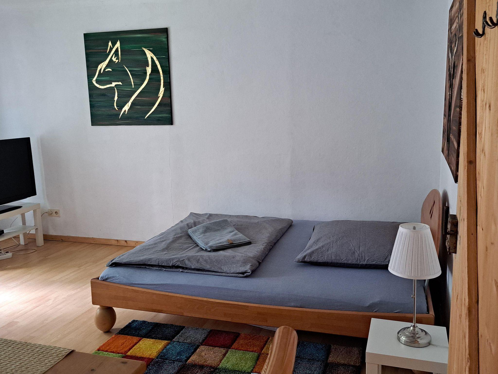 Der große Raum ist Wohn-Schlafzimmer mit Flachbild-TV und Leseecke in einem. Das Bett ist ein Queensizebett (1,60x2,00m) Keine Angst, es ist wirklich gemütlich und nicht beengt. 2 Personen können sich hier wohlfühlen.