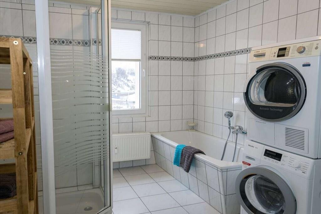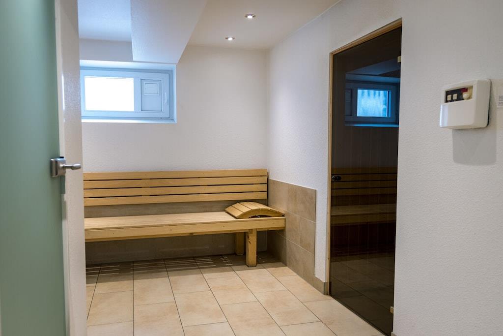 På 1. etage: (spisestue(Fjernsyn, spisebord), Køkken(, , , tekøkken, spisebord, kogeplade, elkedel, brødrister, kaffemaskine, ovn, mikrobølgeovn, opvaskemaskine , køleskab, fryser, fryser), soveværelse(, , enkeltseng, enkeltseng), soveværelse(, , dobbeltseng, tremmeseng), soveværelse(, , dobbeltseng, tremmeseng), soveværelse(, , dobbeltseng), badeværelse(, toilet, badekar, bruser, håndvask), badeværelse(, toilet, badekar, bruser, håndvask), badeværelse(, toilet, badekar, bruser, håndvask), loungerum(Hytte, sauna)) Loft: (Stue(Fjernsyn, stereoanlæg), soveværelse(, , dobbeltseng), soveværelse(, , dobbeltseng), soveværelse(, , dobbeltseng), soveværelse(, , dobbeltseng, tremmeseng, barneseng)) , , , , Internetadgang, tørretumbler, vaskemaskine, varme, terrasse(Grill center, Bordtennis, grill, havemøbler), parkering, strygebræt, strygejern, tørreskab, telefon