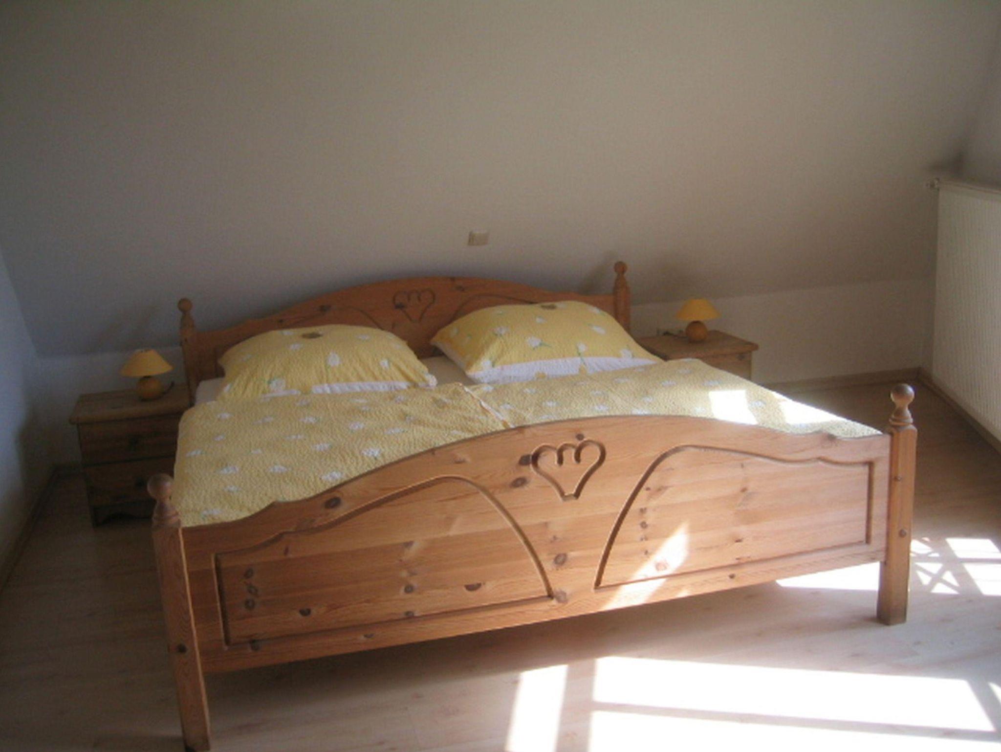 Wohnung Annette ist eine Maisonettewohnung und bietet ***-Sterne-Komfort bei einer Belegung mit 4 Personen. Auf 55 m² finden sich zwei Doppelzimmer (eines in der ersten Ebene, das zweite oben unterm Dach mit Blick zum Haardtgebirge), Dusche mit WC und ein großzügiges Wohn-Esszimmer mit integrierter Küchenzeile, vollständig eingerichtet.
