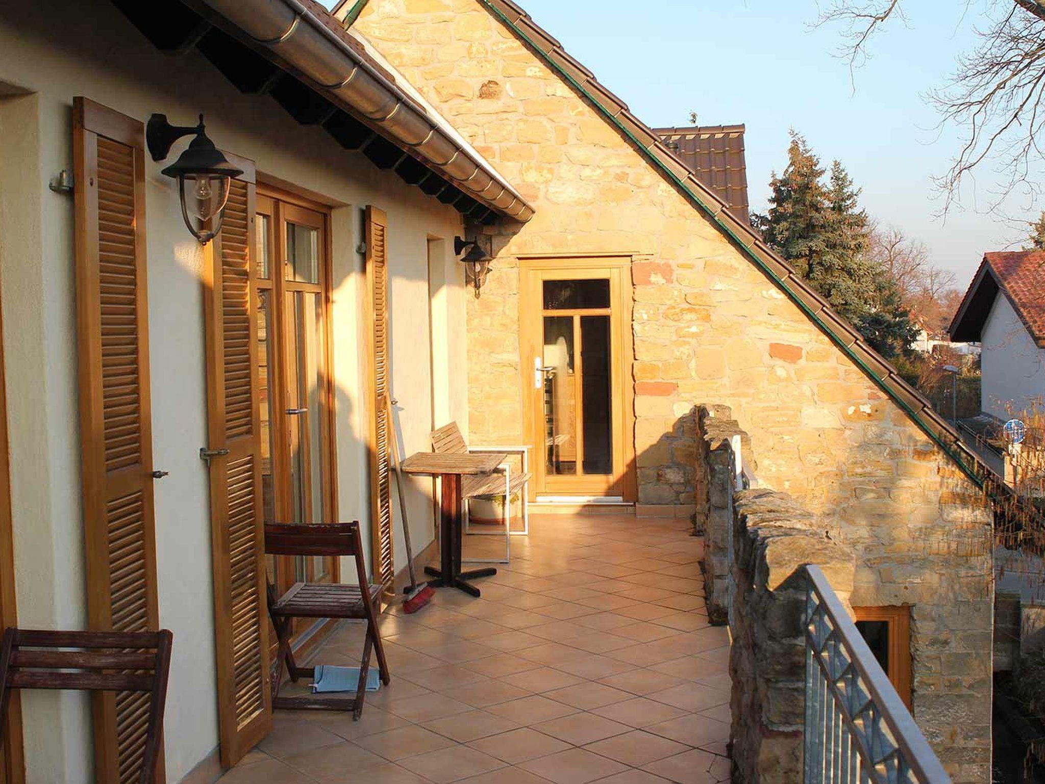 Idyllisch am Flüsslein Isenach gelegen, mit mediterranem Flair und Südbalkon. Von manchen Positionen in unseren drei Ferienwohnungen hat man sogar Blick übers Rebenmeer bis zum 5 km entfernten Pfälzerwald.