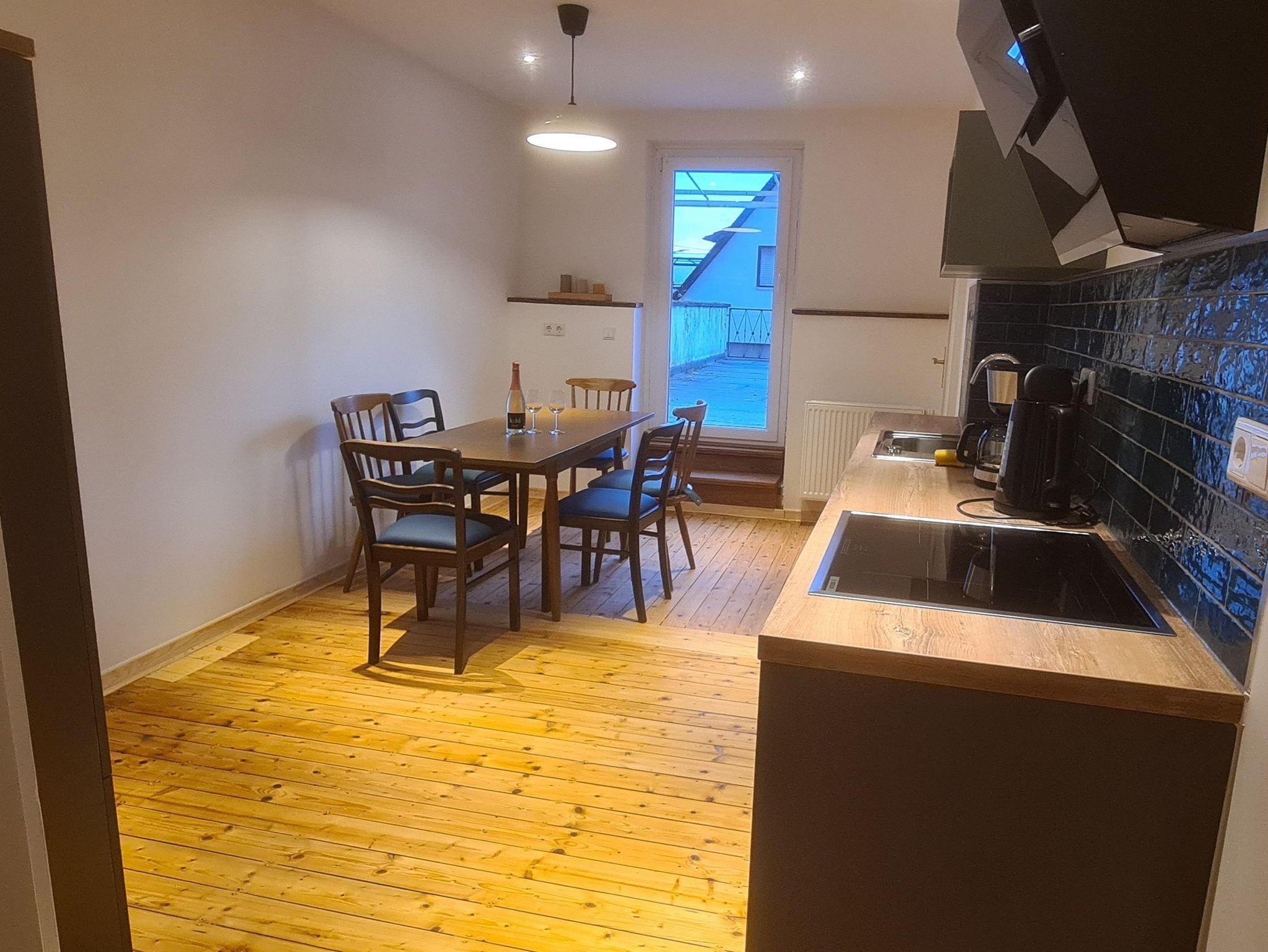 Man blickt zum großen Eichbaum hinweg über Dächer bis zum Haardtgebirge oder über Gärten bis zum Kirchturm. Ganz klar, dass es hier an nichts fehlt, um sich ein paar Tage vom Alltag zu erholen. Selbstverständlich füllen wir auf Wunsch Ihren Kühlschrank mit Ihrem Lieblingsweinen.