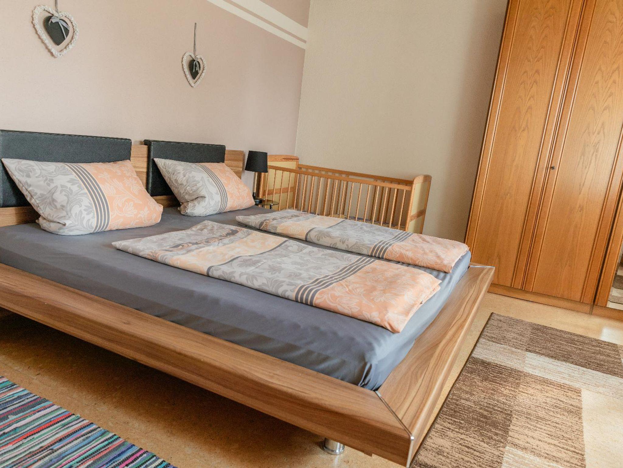Genießen Sie Ihre Urlaubszeit in unserer Ferienwohnung mit eigenem, barrierefreien Eingang sowie eigenem Garten. Die Wohnung ist auch geeignet für Gehbehinderte und Rollstuhlfahrer. 2 Schlafzimmer mit insg. 5 Betten + Gitterbett stehen zur Verfügung. Weitere Ausstattung: großzügiges Bad mit DU und WC, Fußbodenheizung; Küche voll ausgestattet, Spülmaschine, Kühlschrank, Kaffeemaschine; TV im Wohnzimmer mit Internetzugang; WLAN kostenlos, PKW-Stellplatz vor dem Eingang; Haustiere auf Anfrage