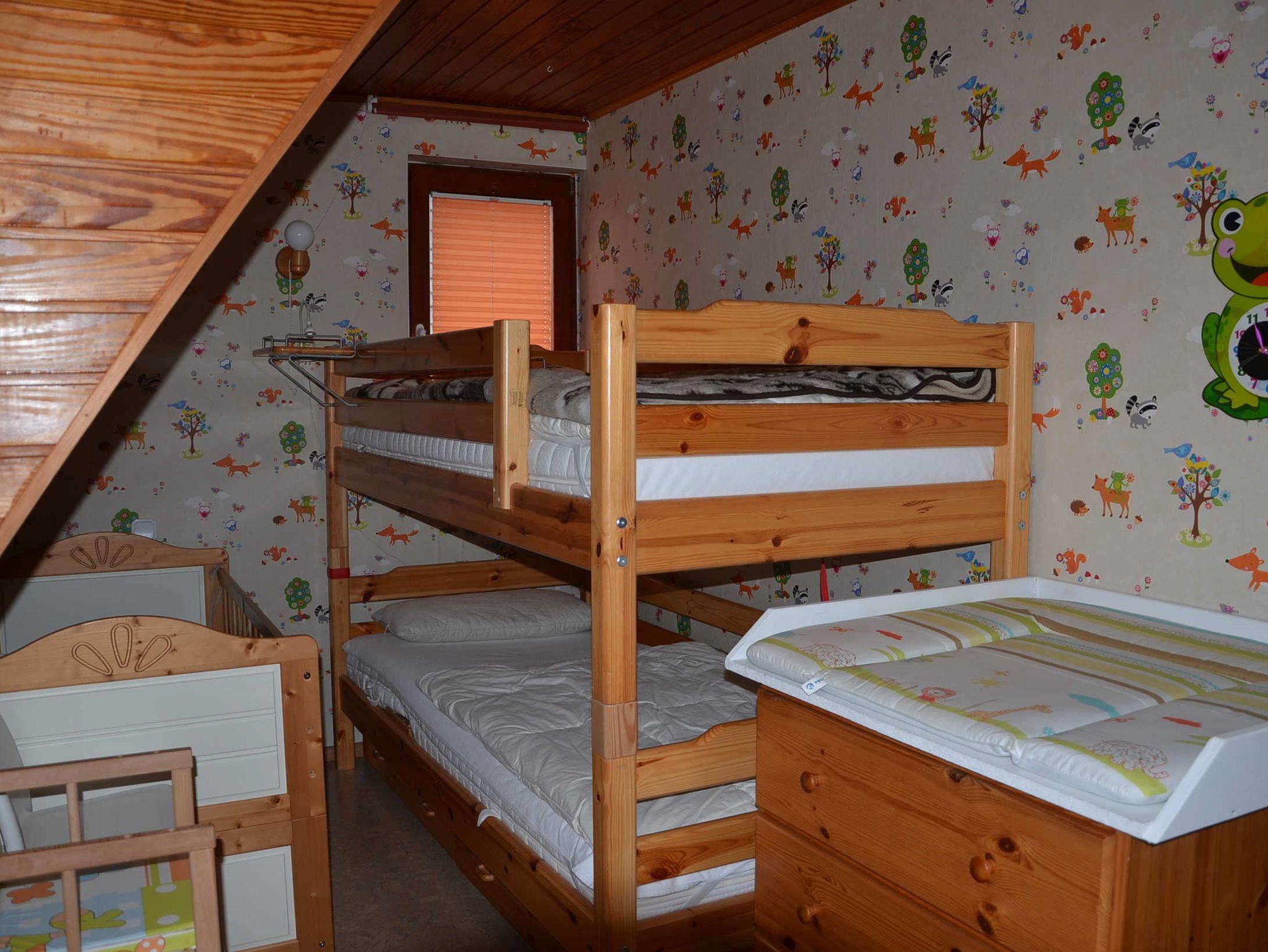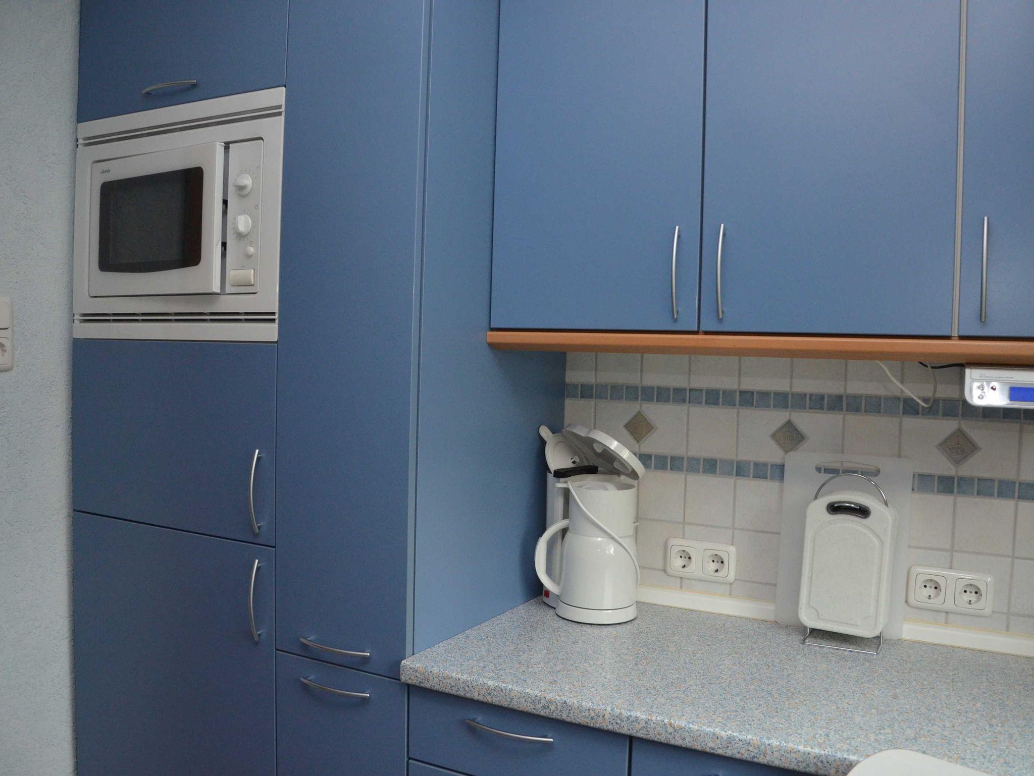 Die Ferienwohnung hat 3 Räume, davon 2 Schlafzimmer. 1 Wohn-, Esszimmer. Küche, Bad mit Dusche, WC und Waschbecken. Großer, teilweise überdachter Balkon mit Gartenmöbeln und E-Kugelgrill. Die Wohnung ist komplett eingerichtet, kinder- und familienfreundlich.