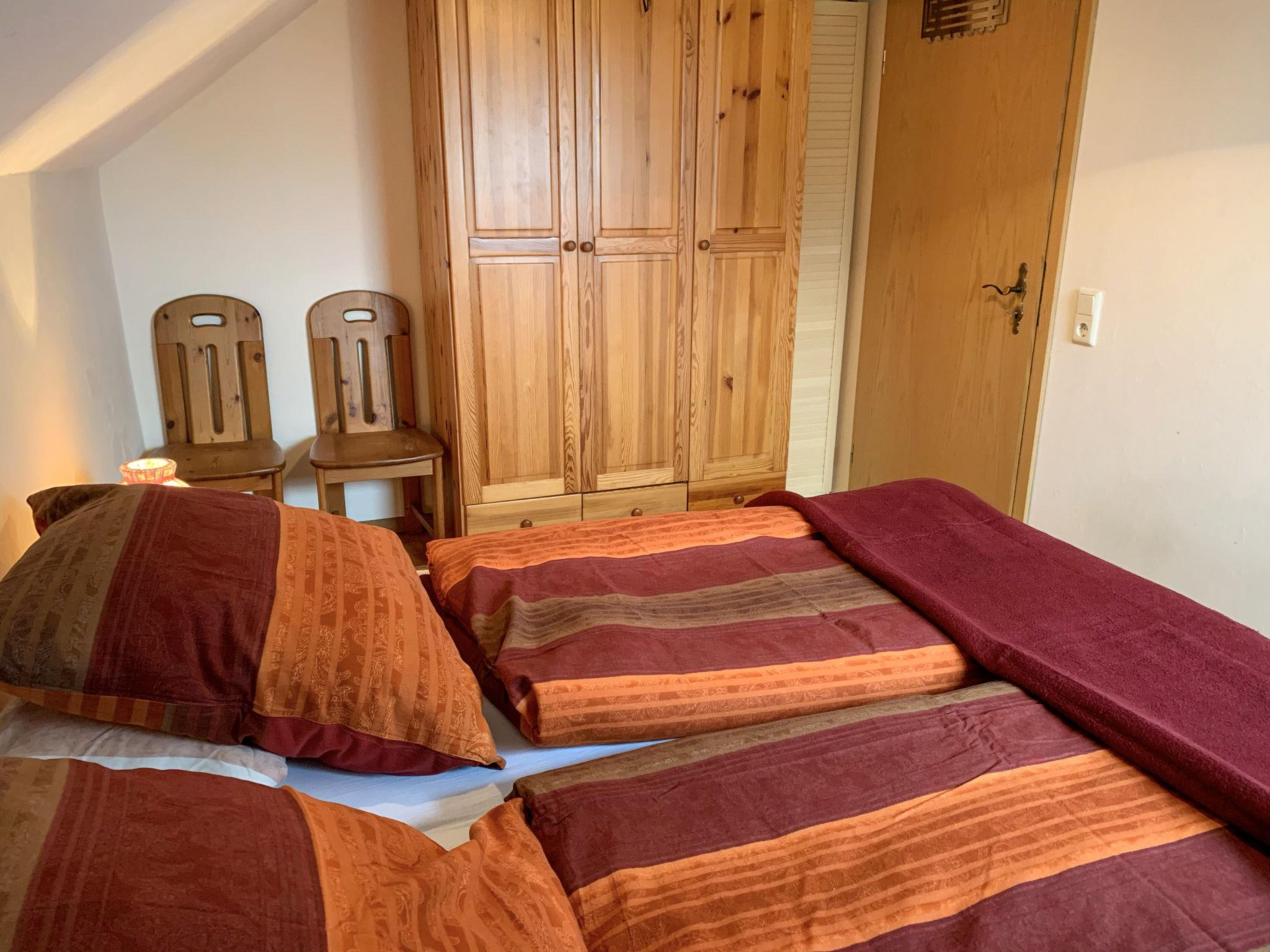3-room apartment 50 m2, on the ground floor. Cosy and wooden furniture furnishings: living/dining room with satellite TV (flat screen), radio. Exit to the terrace. 1 room with 1 double bed (2 x 90 cm, length 200 cm). 1 room with 2 beds (90 cm, length 200 cm). Kitchenette (oven, dishwasher, 4 ceramic glass hob hotplates, toaster, kettle, microwave, electric coffee machine). Shower/WC. Terrace furniture, barbecue (portable). Facilities: Internet (WiFi, free). Please note: non-smokers only. Smoke alarm.