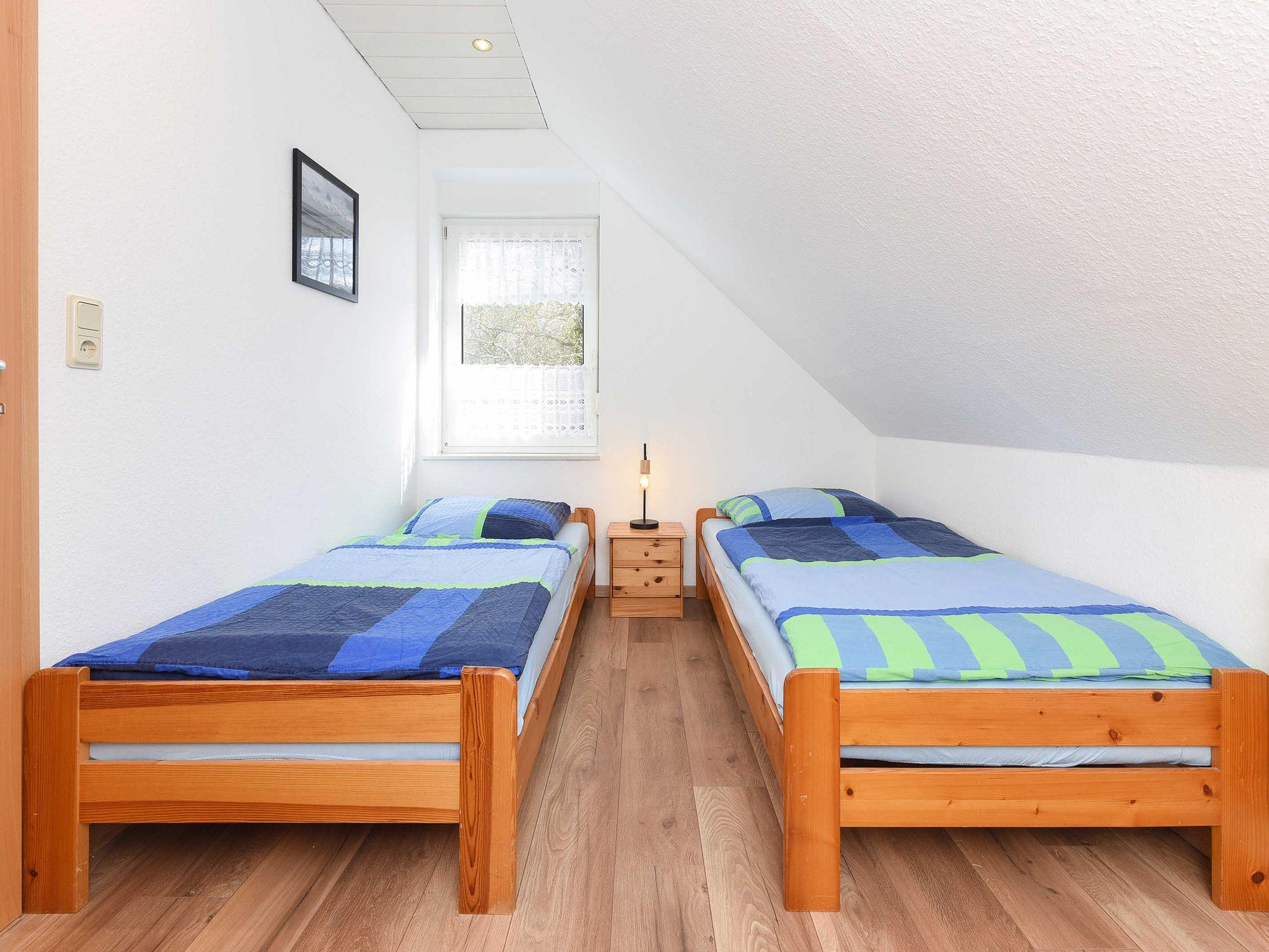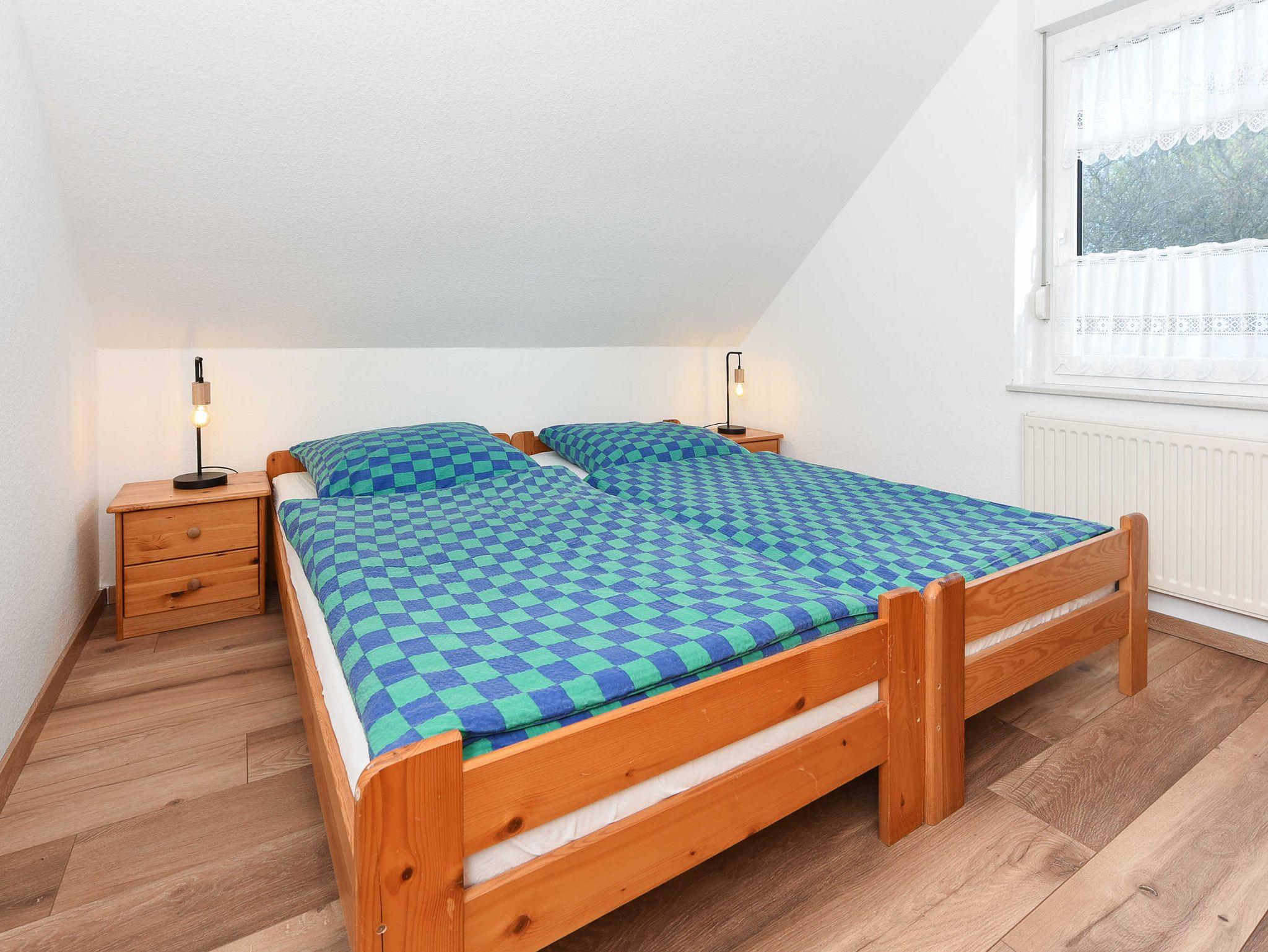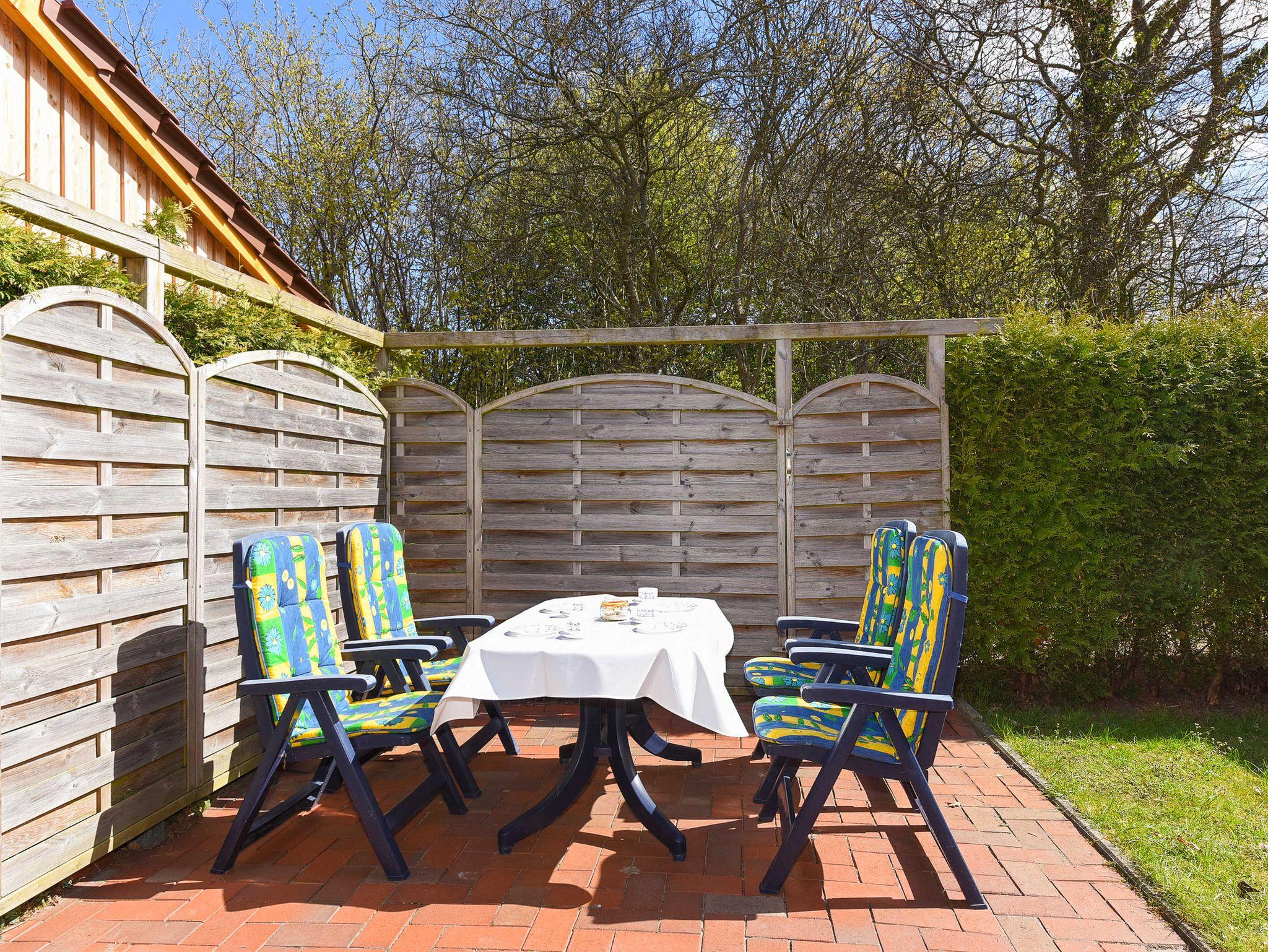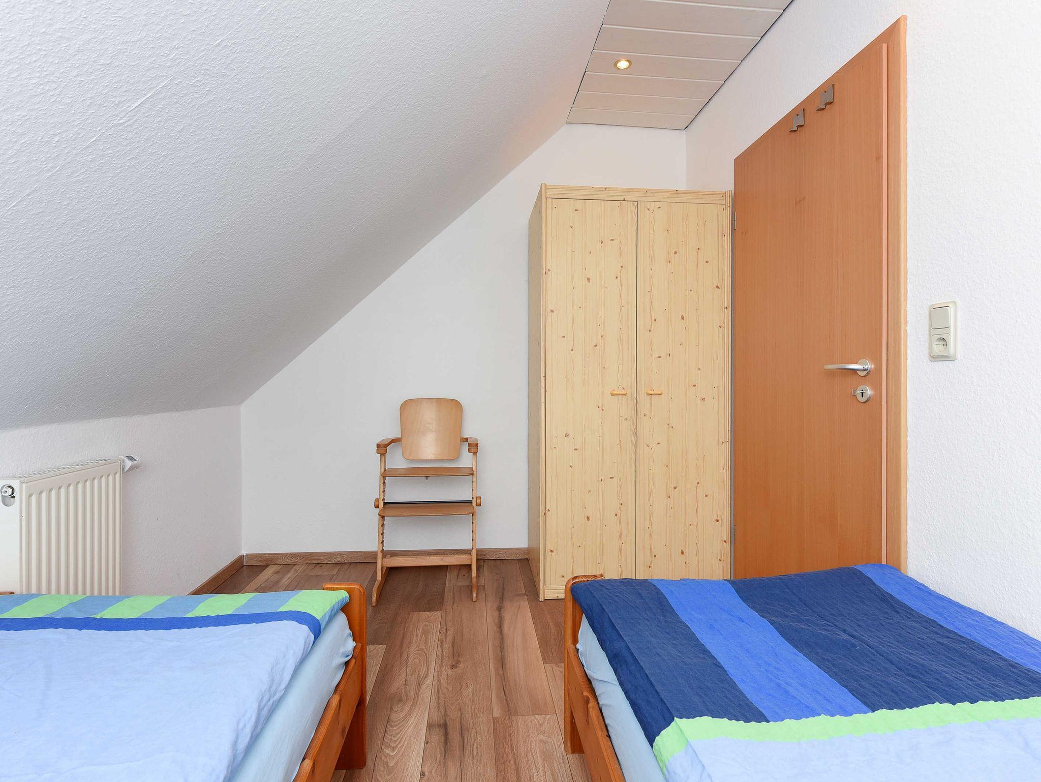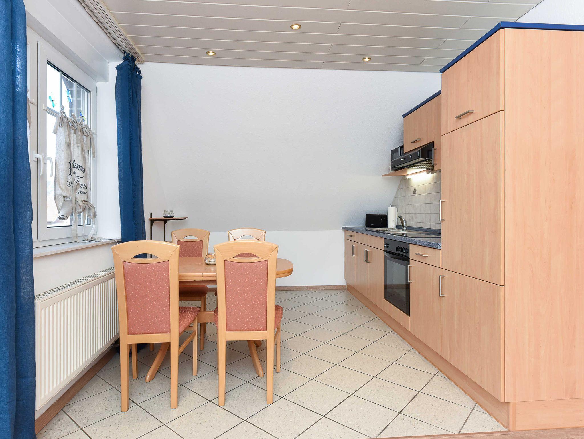 Größe ca. 60 Quadratmeter, Wohnraum mit integrierter Küche, Schlafzimmer, zweites separates, Schlafzimmer/Kinderzimmer, Badezimmer mit Dusche, Waschtisch und WC, Obergeschoss, Terrasse, Koffer-/Abstellraum, Hauswirtschaftsraum mit Waschmaschine und Wäschetrockner, optimal für 2 bis 4 Personen und zusätzlich ein Kleinkind.
