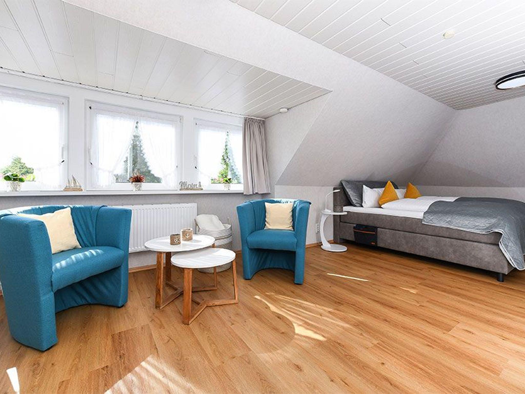 Beide Ferienwohnungen wurden im Februar 2022 (Ferienwohnung „Andrea“) und im Dezember 2023 (Ferienwohnung „Gesine“) renoviert und modern eingerichtet. Die Balkone beider Ferienwohnungen befinden sich an der Südwestseite des Hauses, ideal, um den schönen Urlaubstag bei Sonnenuntergang ausklingen zu lassen.