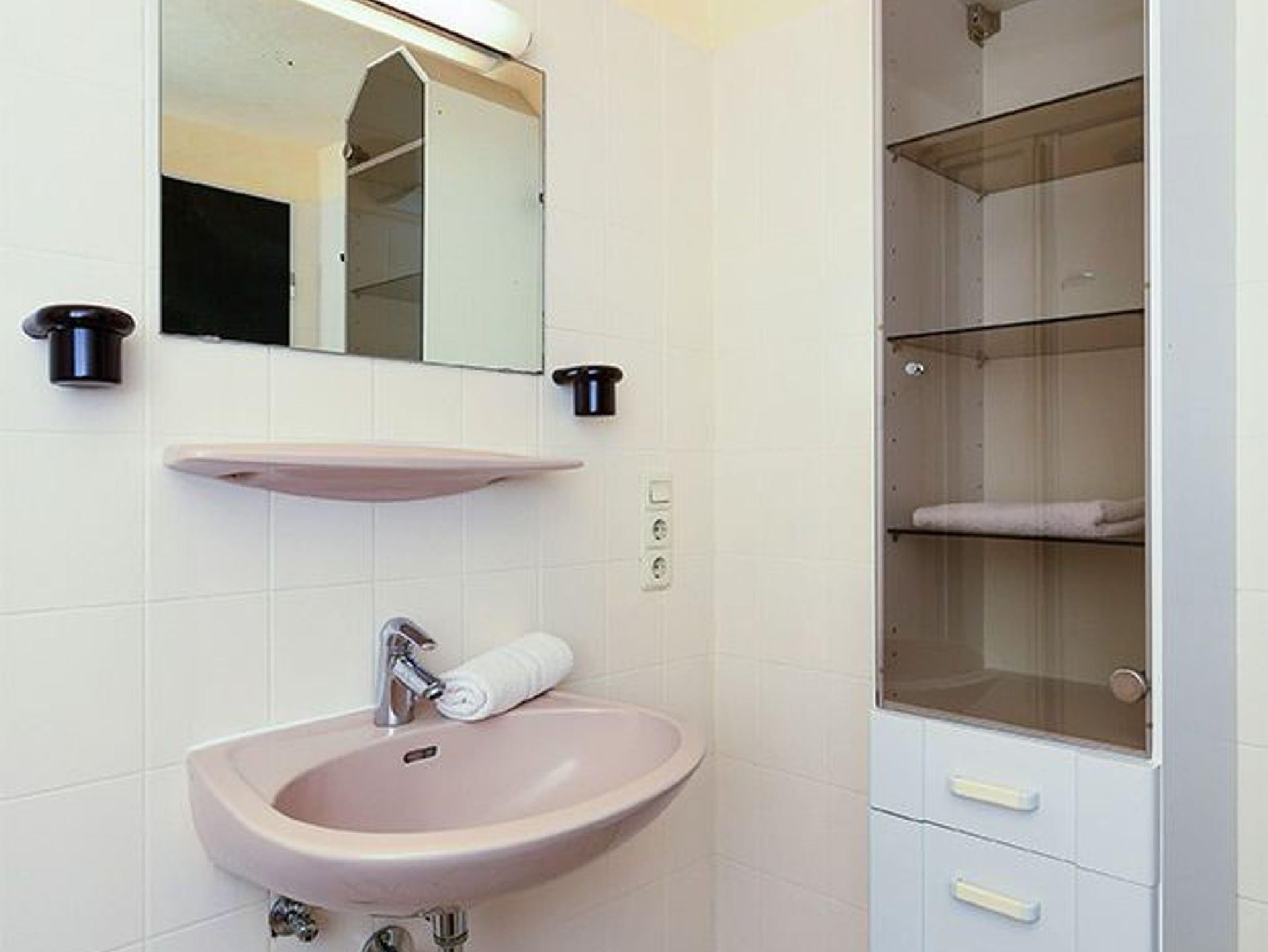 Badezimmer mit Dusche, Waschtisch und WC