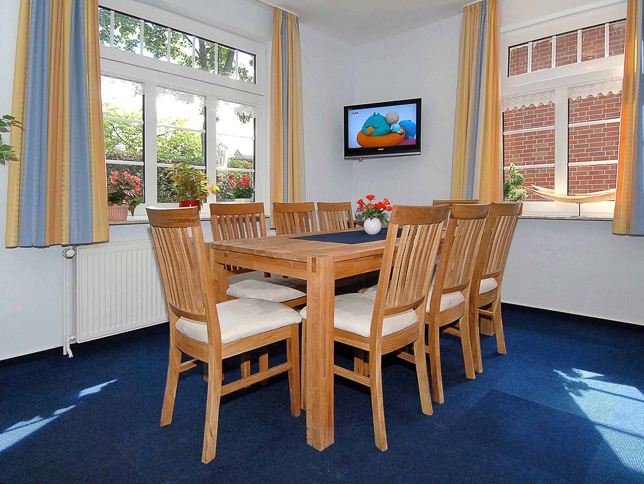 Ihr Ferienhaus ?Nordseezauber? steht in zentraler und äußerst ruhiger Lage in der alten Bärenstadt Esens im Nordsee-Heilbad Esens-Bensersiel am einzigartigen Naturschauspiel ?Nationalpark Niedersächsisches Wattenmeer?, seit 2009 ?UNESCO-Weltnaturerbe?. Es stehen insgesamt nicht viele solcher Urlaubs-Quartiere in Esens und an der ostfriesischen Nordsee insgesamt zur Verfügung, außerdem ist das Ferienhaus vergleichsweise sehr preiswert. Deshalb ist die Nachfrage sehr groß und das Ferienhaus ?Nordseezauber? ist daher auch immer recht frühzeitig ausgebucht. Das Ferienhaus ist ein freistehendes ehemaliges Einfamilienhaus mit großem Garten, einem Wohnzimmer, einem Esszimmer, einer Küche und drei Schlafzimmern. Außerdem gibt es ein großes Badezimmer mit Dusche, Badewanne und zwei Waschtischen, ein weiteres WC und eine Garage für Ihr Fahrzeug. Im großen Garten mit Platz zum Toben und Spielen für die uns sehr willkommenen Kinder gibt es für die Erwachsenen eine sehr geschützte Sonnenterrasse. Das Ferienhaus liegt in einer äußerst ruhigen Lage ? wenn Sie das zeitweilige Schnauben der Pferde nicht stört, die im Winterhalbjahr auf dem Bauernhof nebenan ?wohnen?. Das Ferienhaus ?Nordseezauber? steht mitten in der alten Stadt Esens am Süderwall. Der ?Süderwall?, ist der ehemalige Stadtwall der Stadt. Beinahe parallel zum ?Süderwall? verläuft in nur knapp 100 Metern die Fußgängerzone ?Steinstraße? und bis zum Marktplatz und der ?Herdesstraße? (neben der ?Steinstraße? die zweitwichtigste Einkaufsstraße) sind es ebenfalls nur ungefähr 100 bzw. 150 Meter. Sie sind also mittendrin in Esens und das ist wirklich prima! Am ?Süderwall? gibt es keinen Auto-Durchgangsverkehr. Bis direkt vor das Haus kann man aber dank guter Überwege-Regelungen mit dem Auto fahren, eine Garage ist wie schon erwähnt auch vorhanden. Ansonsten herrscht hier in unmittelbarer Nähe des touristischen Stadtbetriebs völlige und erstaunliche Ruhe! Übrigens liegt der zentrale Omnibusbahnhof von Esens auch nur ungefähr 200 Meter entfernt vom Ferienhaus ?Nordseezauber?.